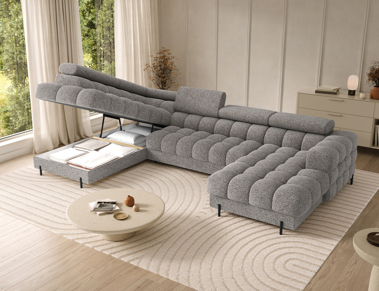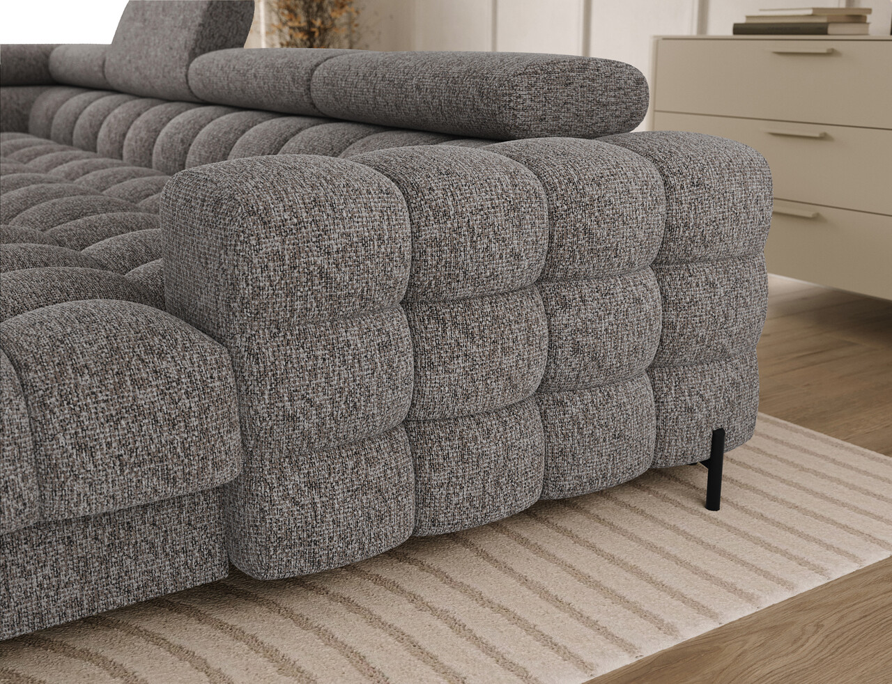 Coltar extensibil stanga 3 locuri ELTAP, LT-20PEL, Feraria, 358x202x93 cm, lemn/poliester, gri