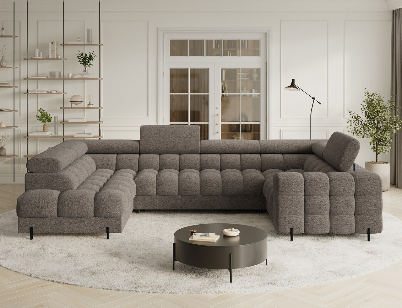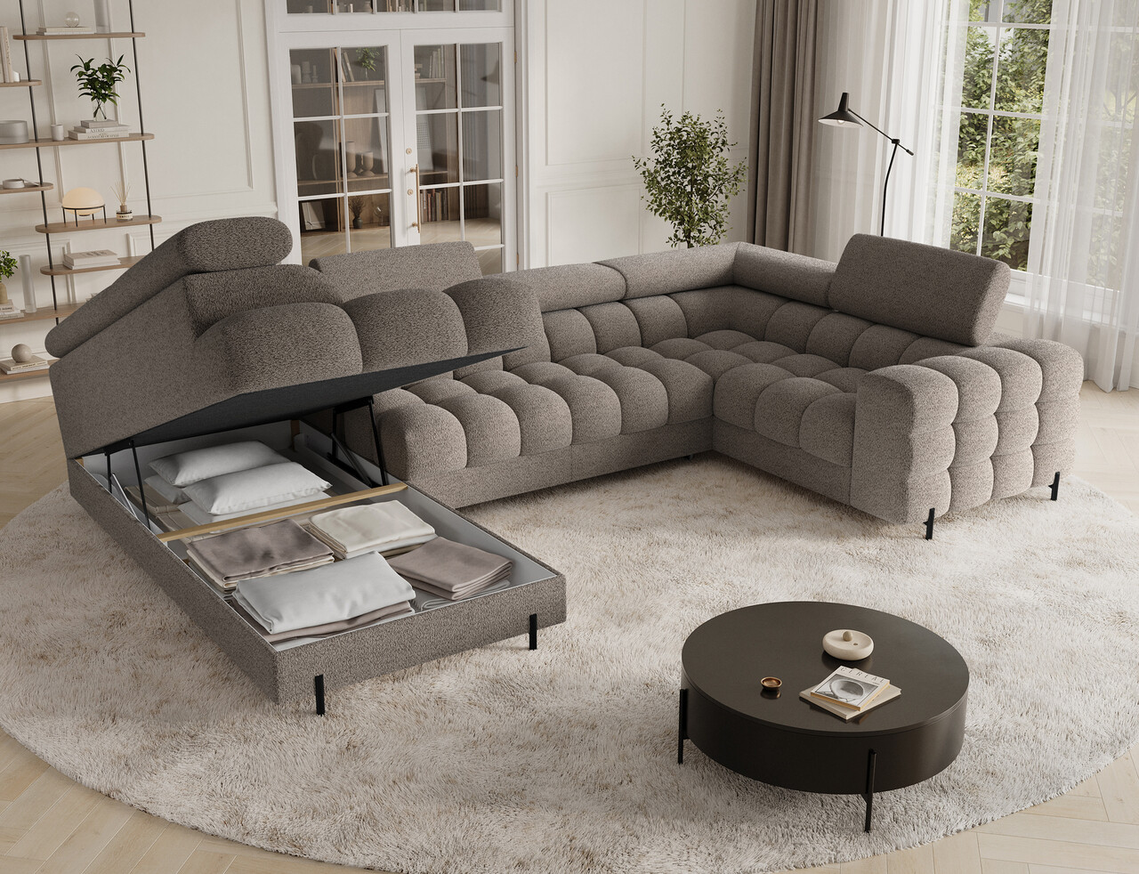 Coltar extensibil stanga 3 locuri ELTAP, LT-20ROY, Fectory, 346x205x93 cm, lemn/poliester, maro