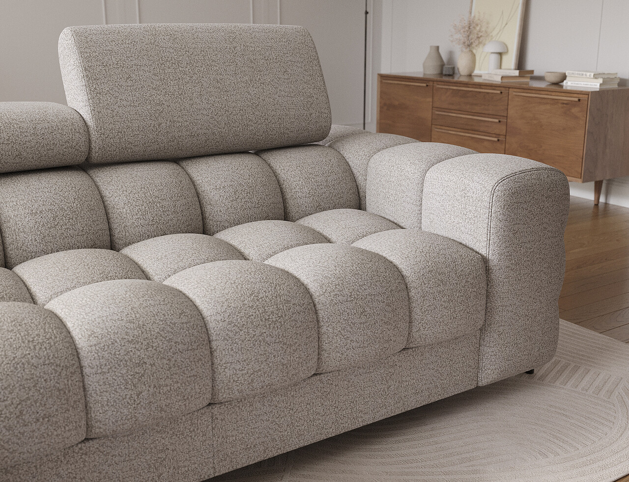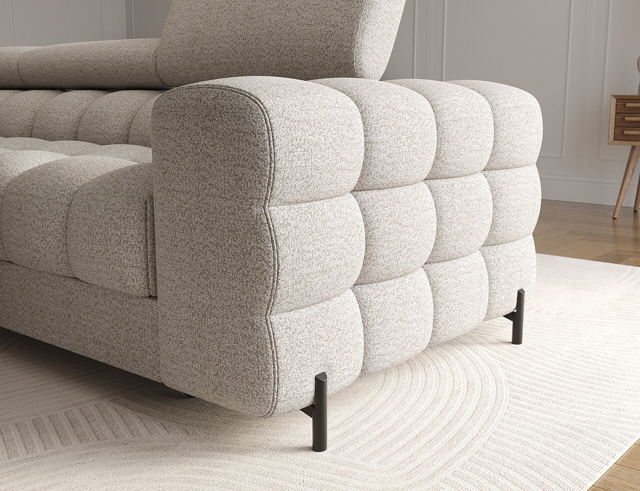 Coltarul Felro este combinatia perfecta intre design modern, confort si functionalitate. Sezutul coltarului este umplut cu arcuri sinusoidale de tip B si spuma de inalta calitate T3030 si HR3030, asigurand un confort exceptional atat in utilizarea zilnica, cat si in momentele de relaxare. Datorita acestui fapt, mobilierul nu este doar moale si elastic, ci si rezistent la deformare, garantand o durabilitate indelungata. Constructia solida se sprijina pe picioare metalice vopsite electrostatic in negru, oferind un caracter elegant si modern intregului ansamblu. Coltarul Felro are si functie de dormit, ceea ce il face o alegere ideala pentru un living in care stilul si practicabilitatea sunt esentiale. Mecanismul de extindere de tip delfin permite transformarea rapida si usoara a coltarului intr-un loc de dormit confortabil. Un avantaj suplimentar este spatarul tapitat, permitand coltarului sa arate impecabil din orice unghi si sa fie plasat atat langa perete, cat si in mijlocul camerei. Designul sau modern face ca Felro sa se integreze perfect in interioarele contemporane, adaugand eleganta si functionalitate.