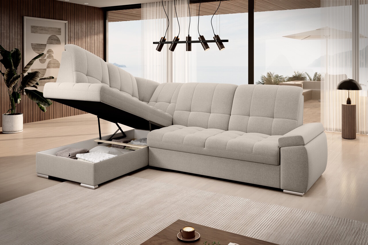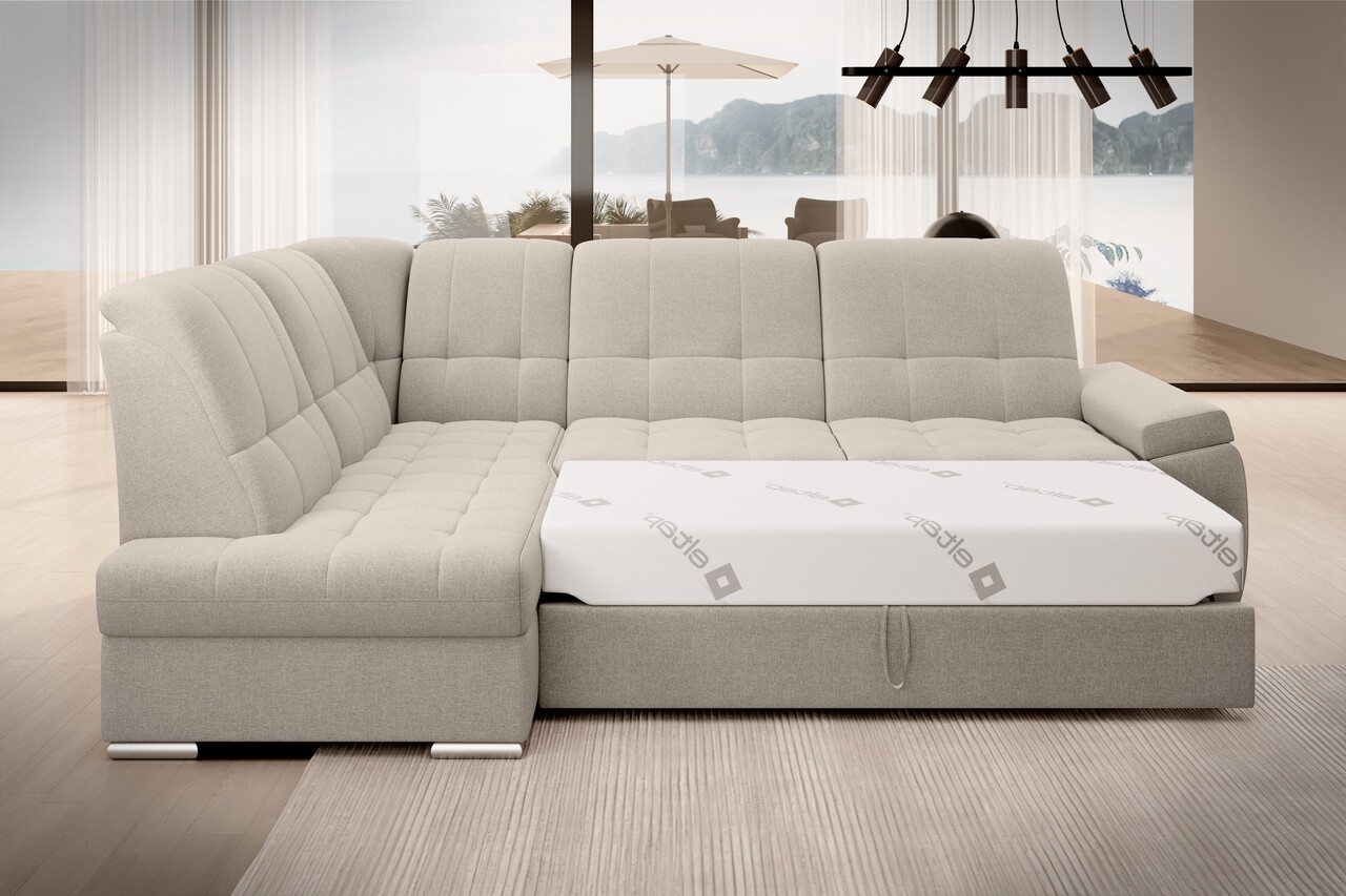 Coltar extensibil stanga 3 locuri ELTAP, LT-22IN, Sado, 272x192x95 cm, lemn/poliester, bej deschis