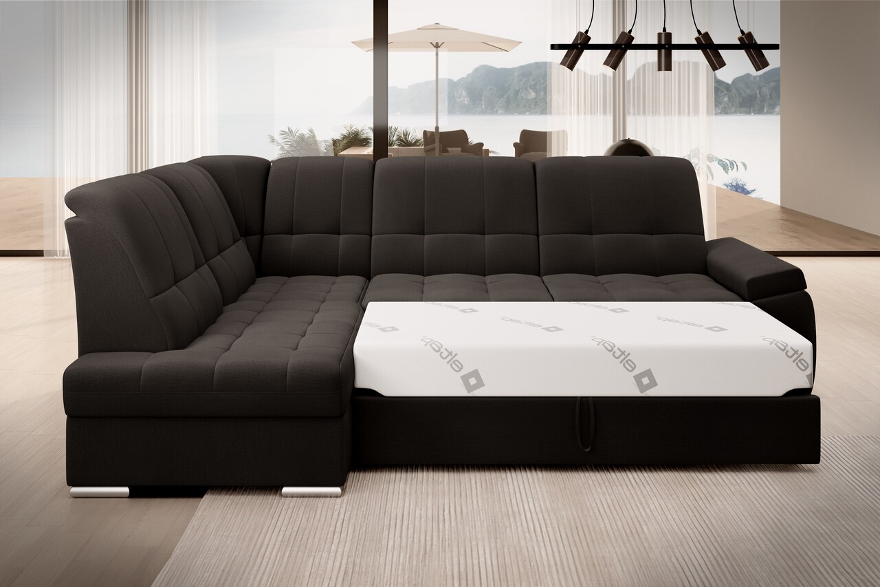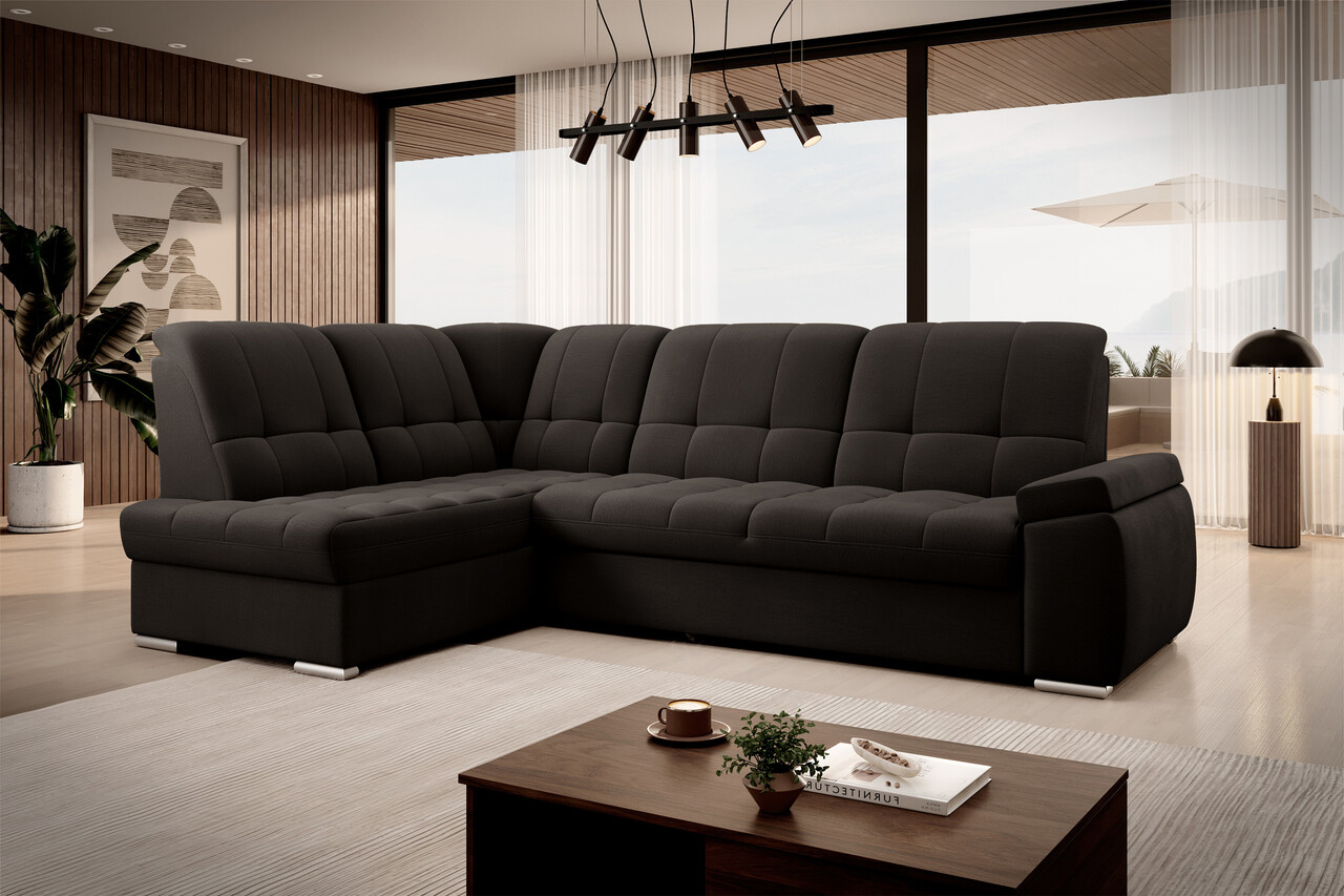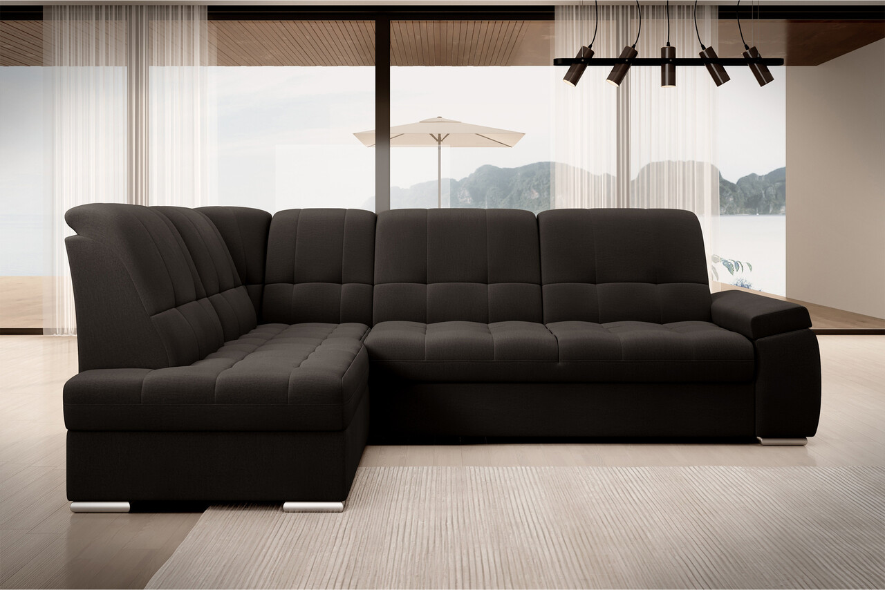 Coltar extensibil stanga 3 locuri ELTAP, LT-22NU, Sado, 272x192x95 cm, lemn/poliester, maro inchis