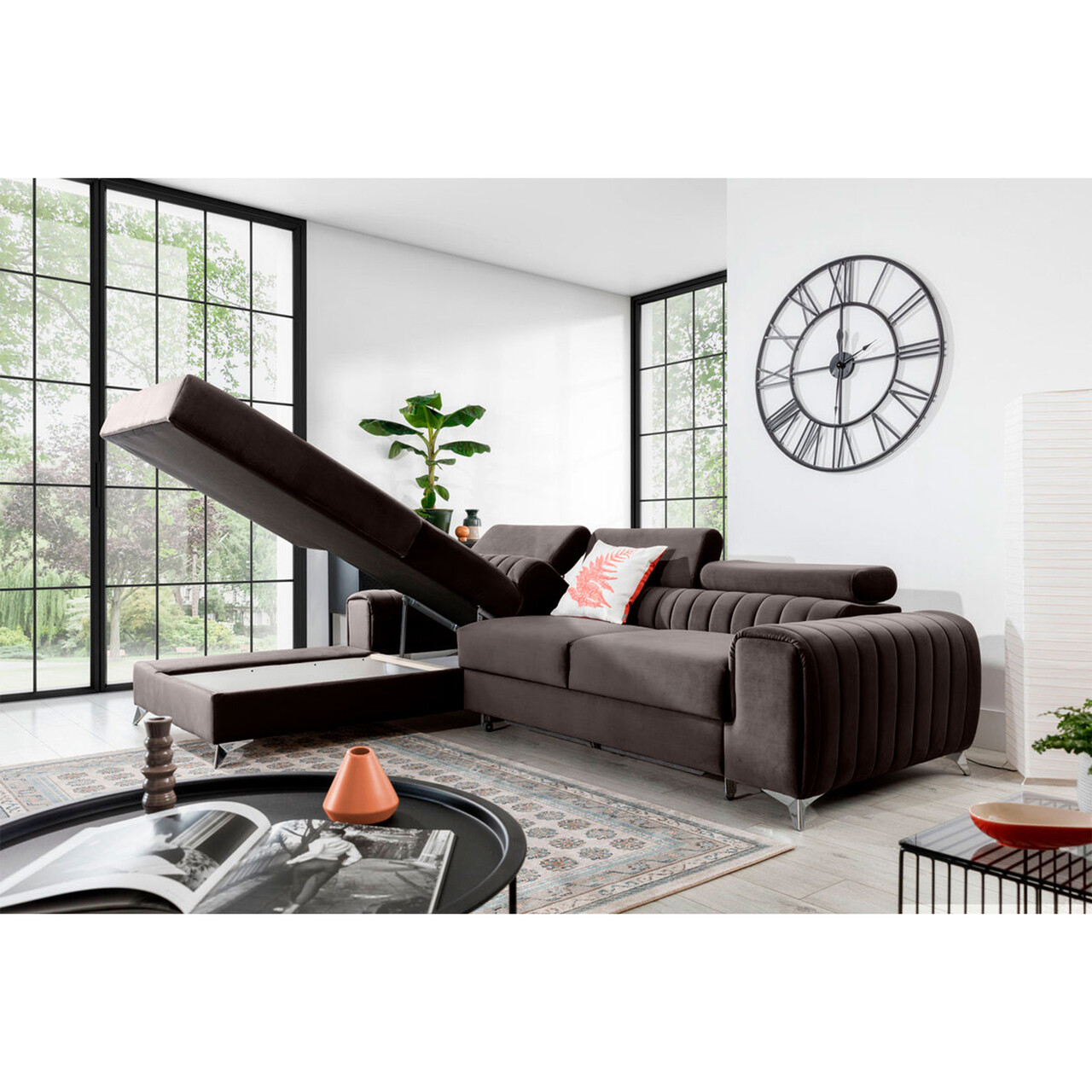 Coltar extensibil stanga 3 locuri ELTAP, LT-22VE, Grayson, 278x205x92 cm, lemn/poliester, maro