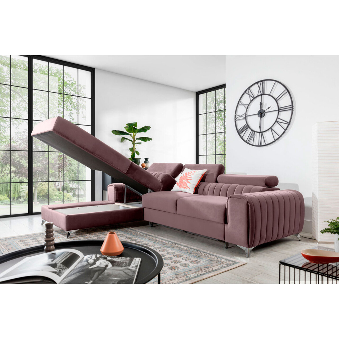 Coltar extensibil stanga 3 locuri ELTAP, LT-24LO, Grayson, 278x205x92 cm, lemn/poliester, roz
