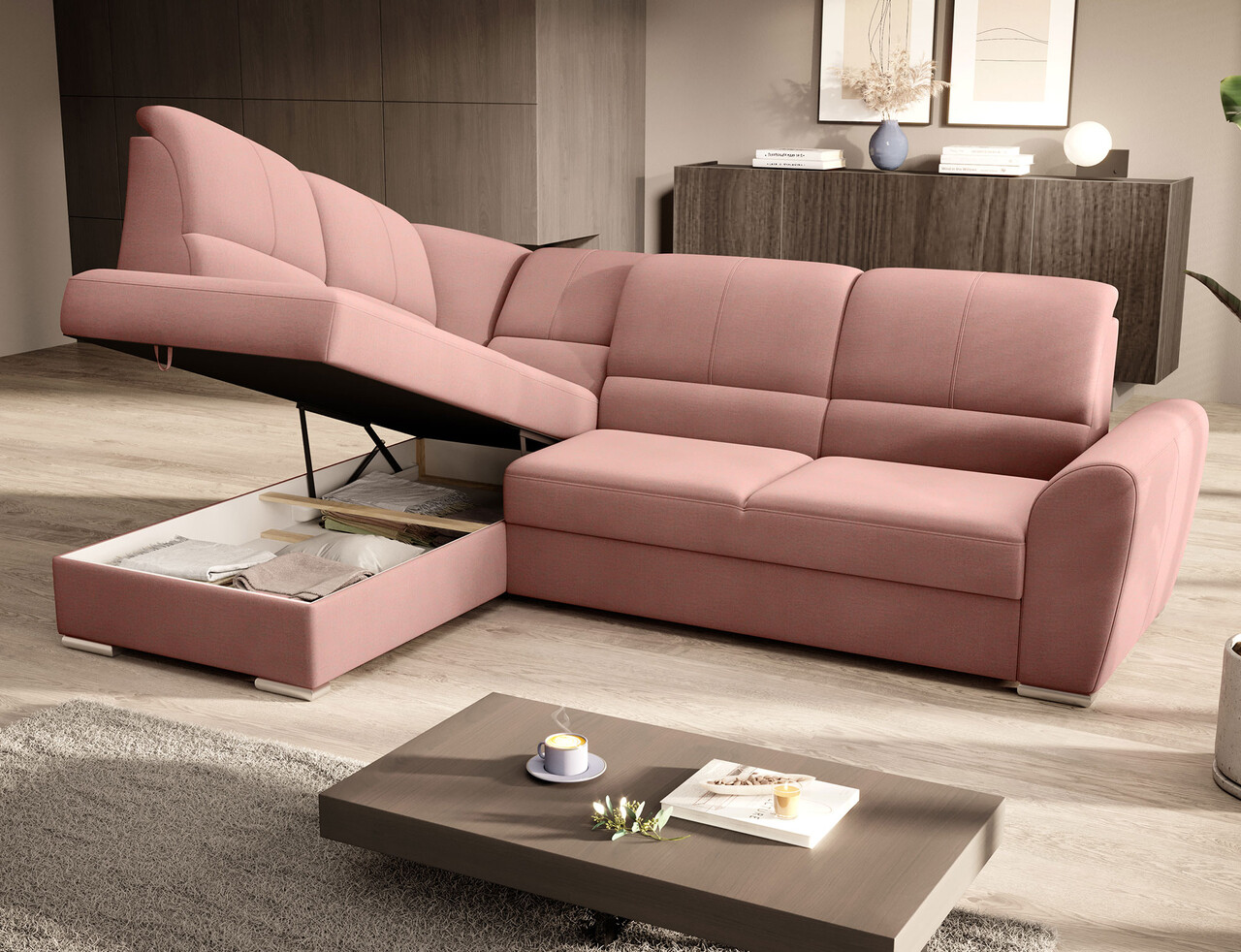 Coltar extensibil stanga 3 locuri ELTAP, LT-24NU, Siber, 270x186x93 cm, lemn/poliester, roz