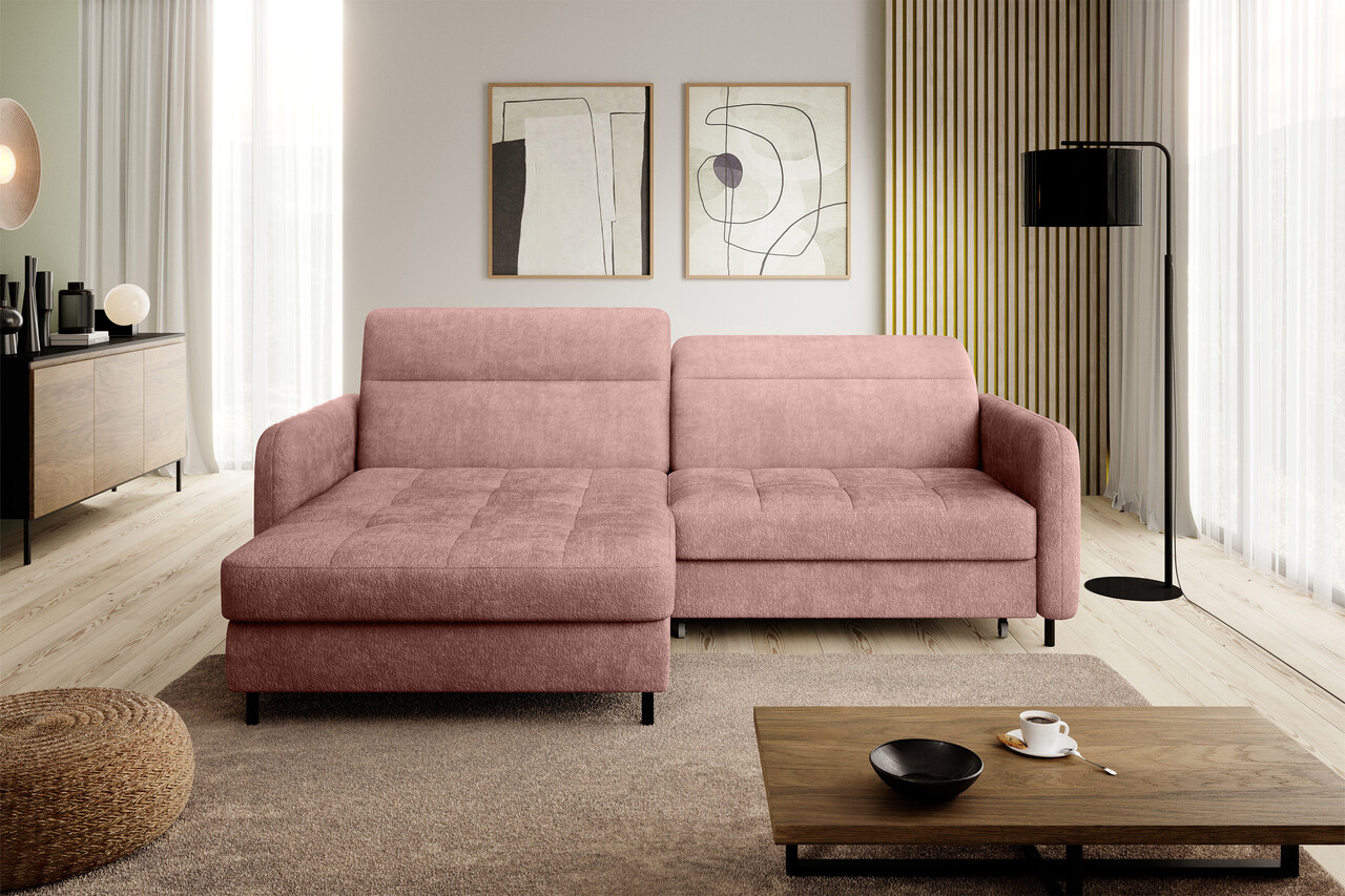 Coltar extensibil stanga 3 locuri ELTAP, LT-24TOU, Gomsi, 228x165x100 cm, lemn/poliester, roz