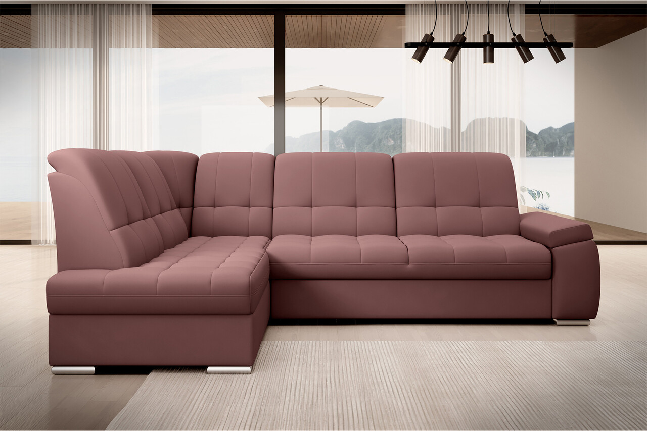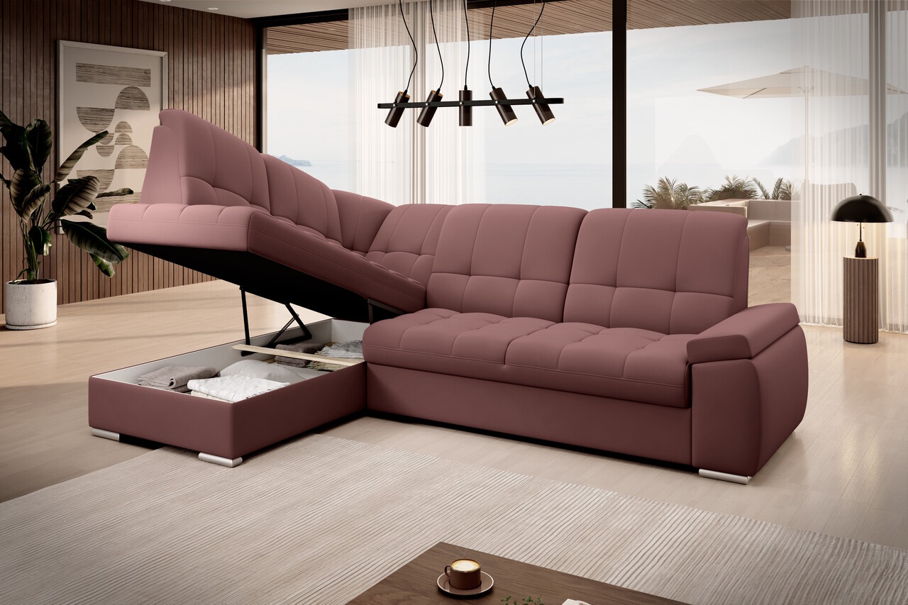 Coltar extensibil stanga 3 locuri ELTAP, LT-24VE, Sado, 272x192x95 cm, lemn/poliester, roz inchis