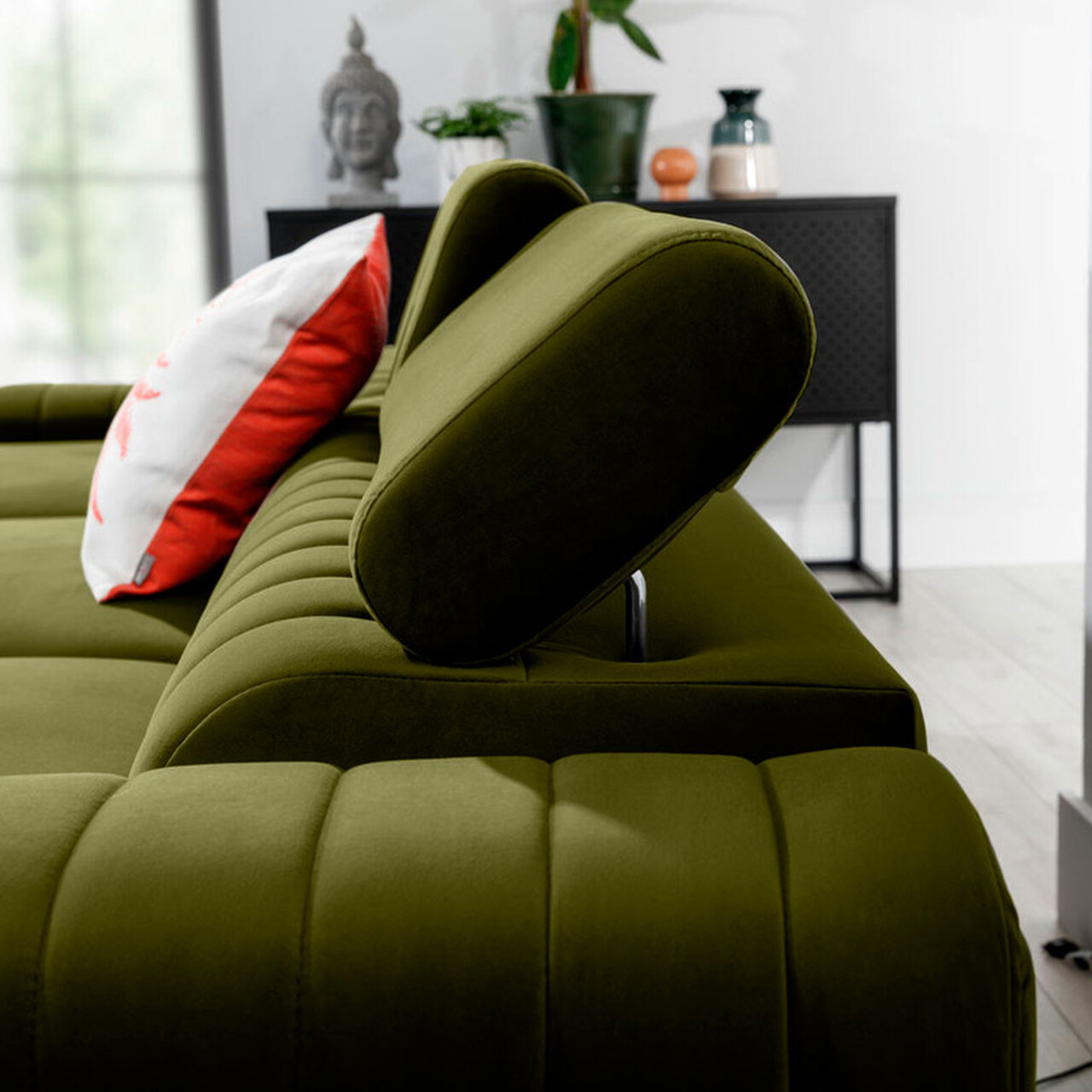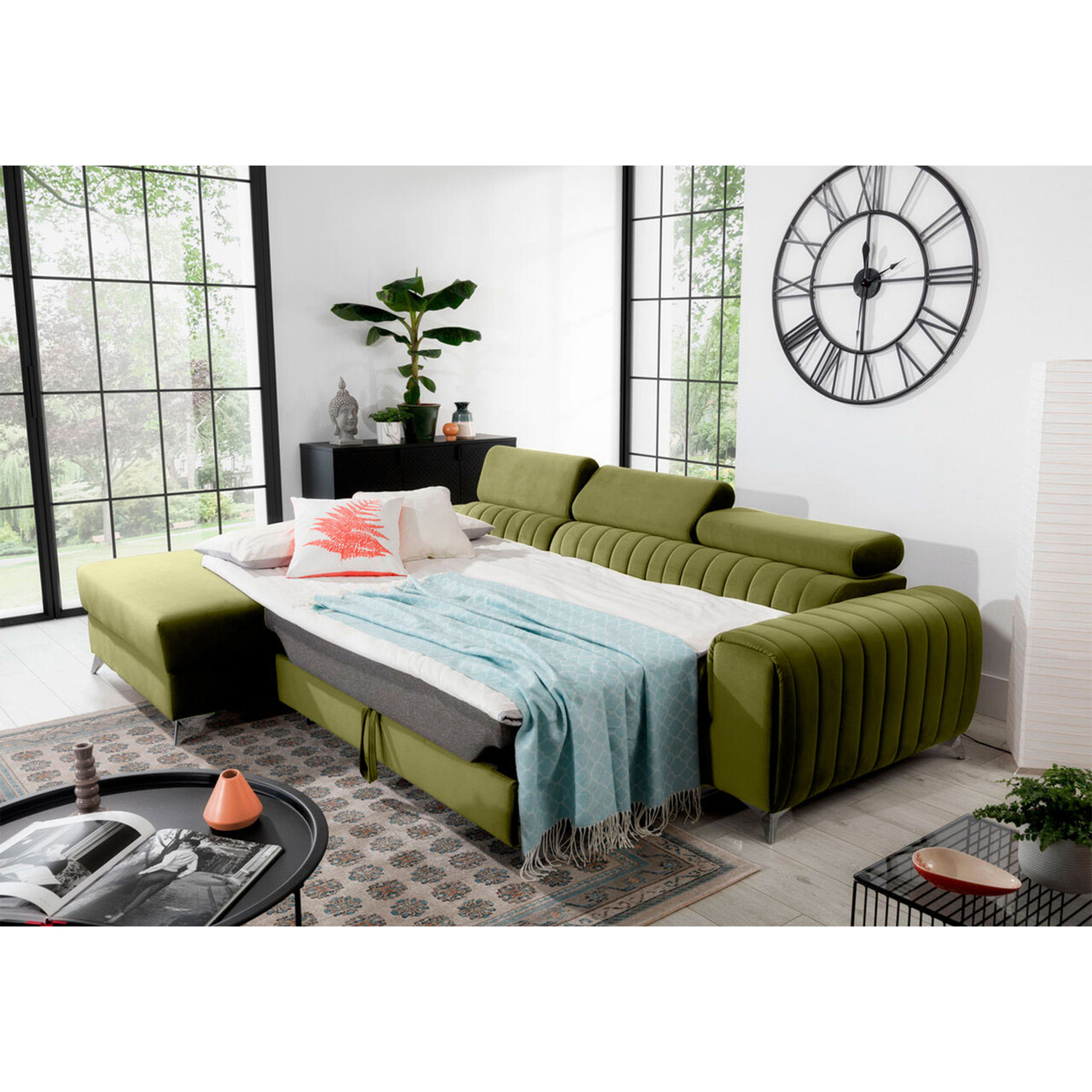 Coltar extensibil stanga 3 locuri ELTAP, LT-33LO, Grayson, 278x205x92 cm, lemn/poliester, verde olive