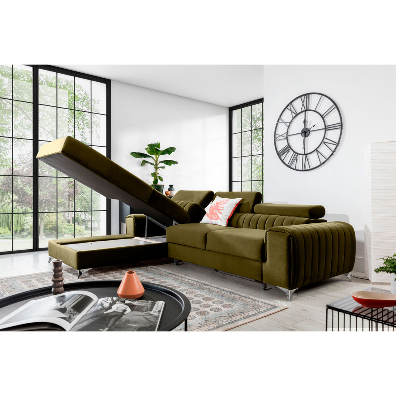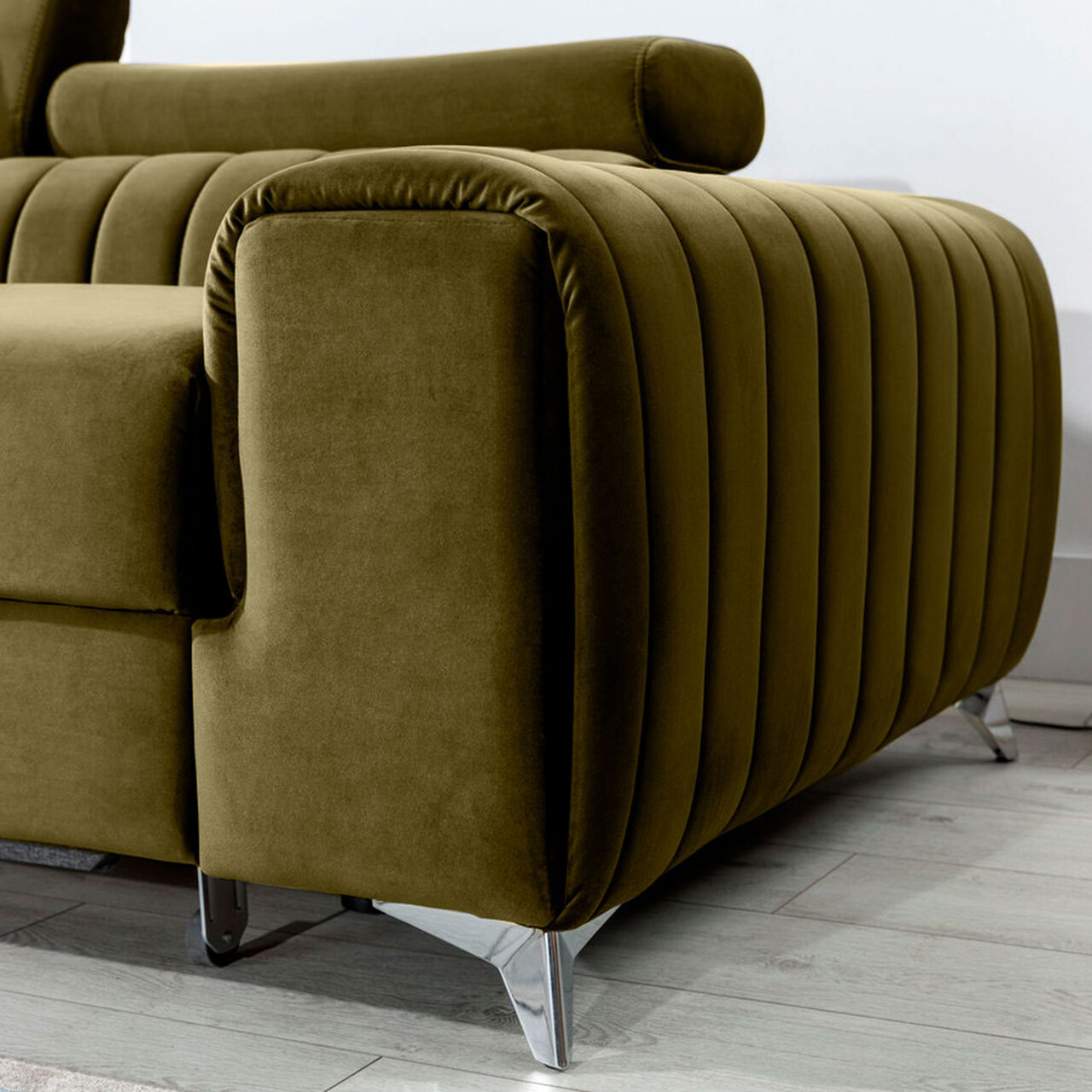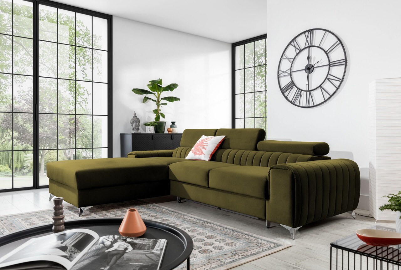 Coltar extensibil stanga 3 locuri ELTAP, LT-33NU, Grayson, 278x205x92 cm, lemn/poliester, verde olive