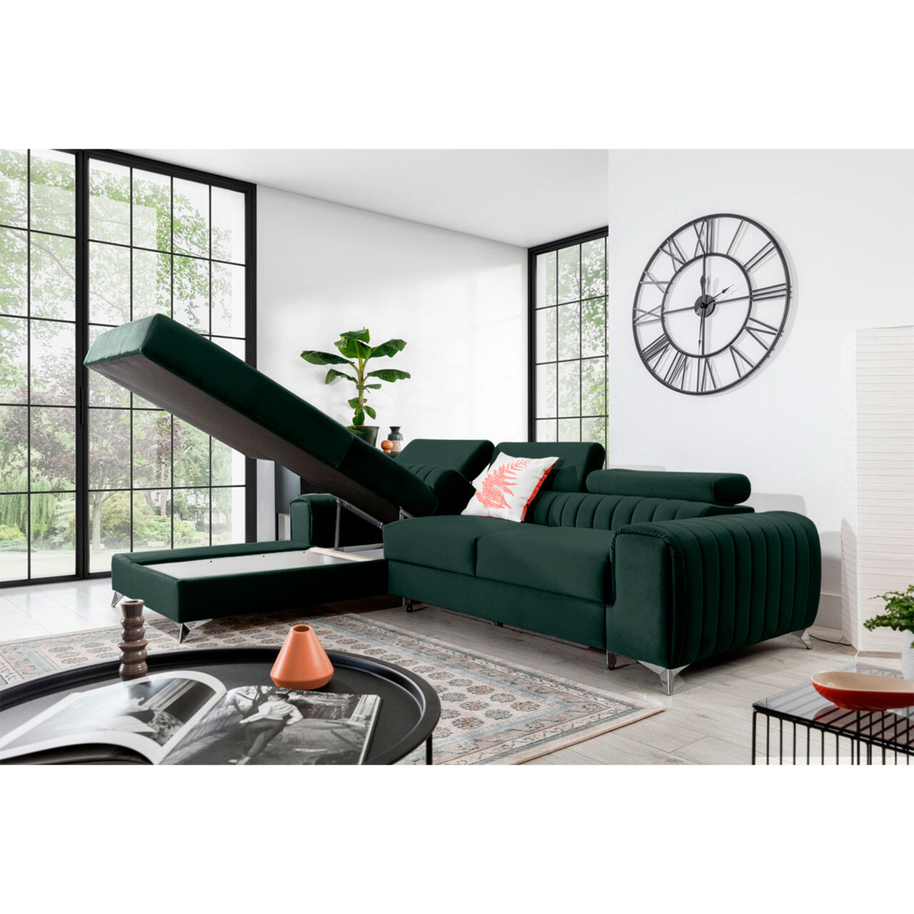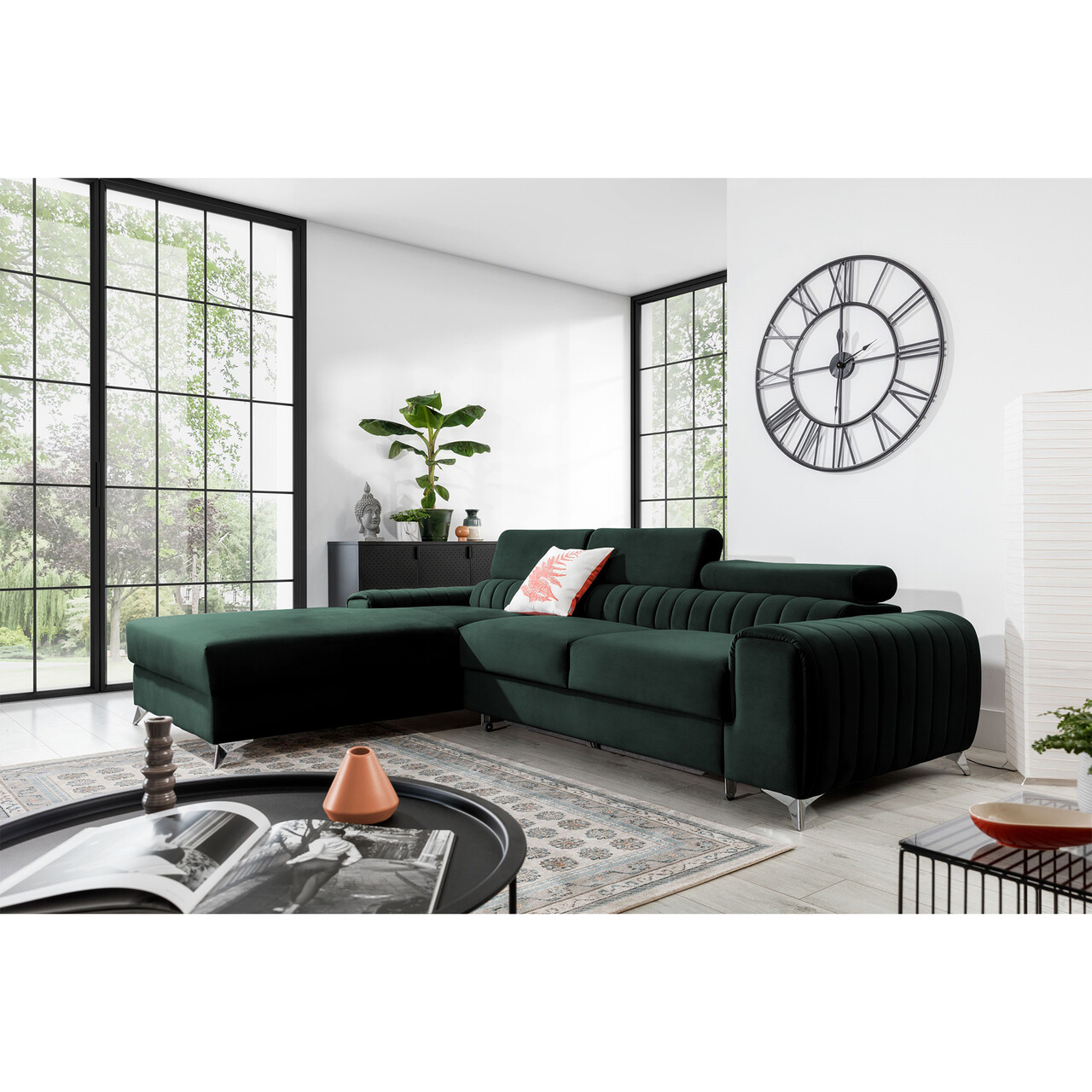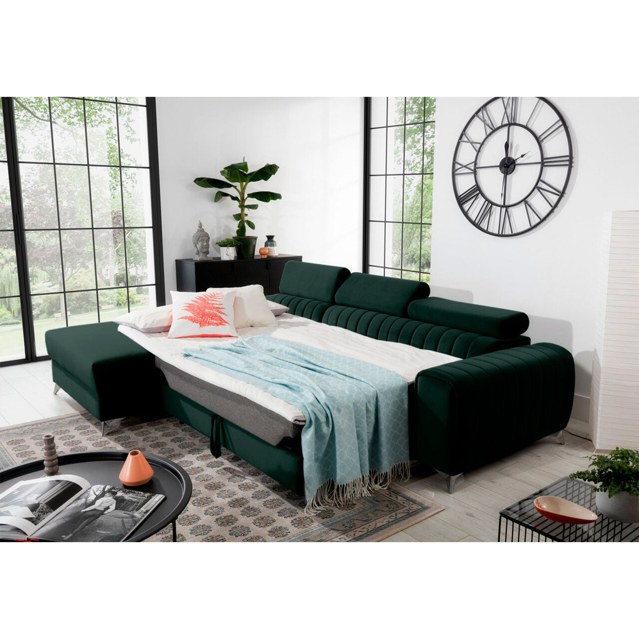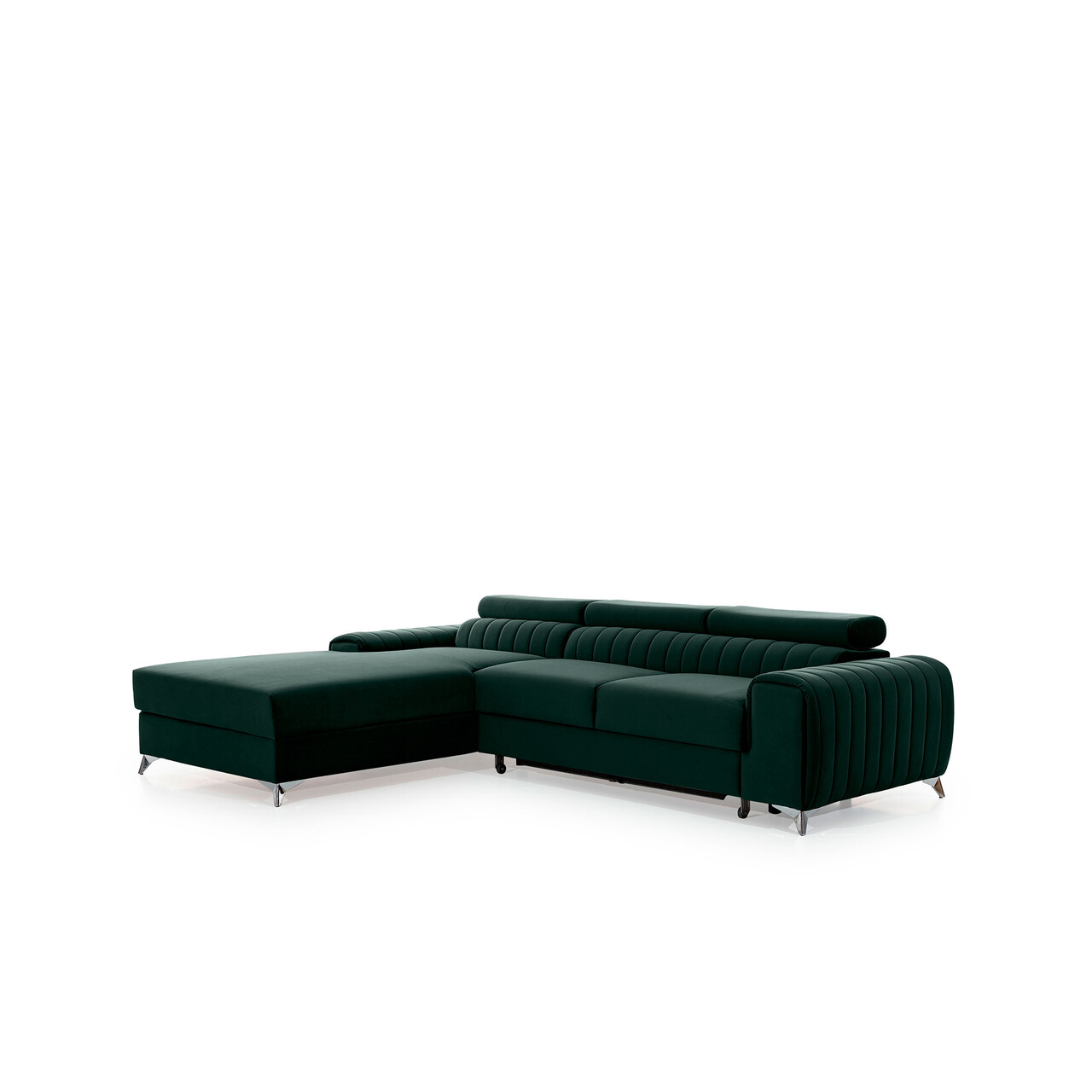 Coltar extensibil stanga 3 locuri ELTAP, LT-35LO, Grayson, 278x205x92 cm, lemn/poliester, verde inchis