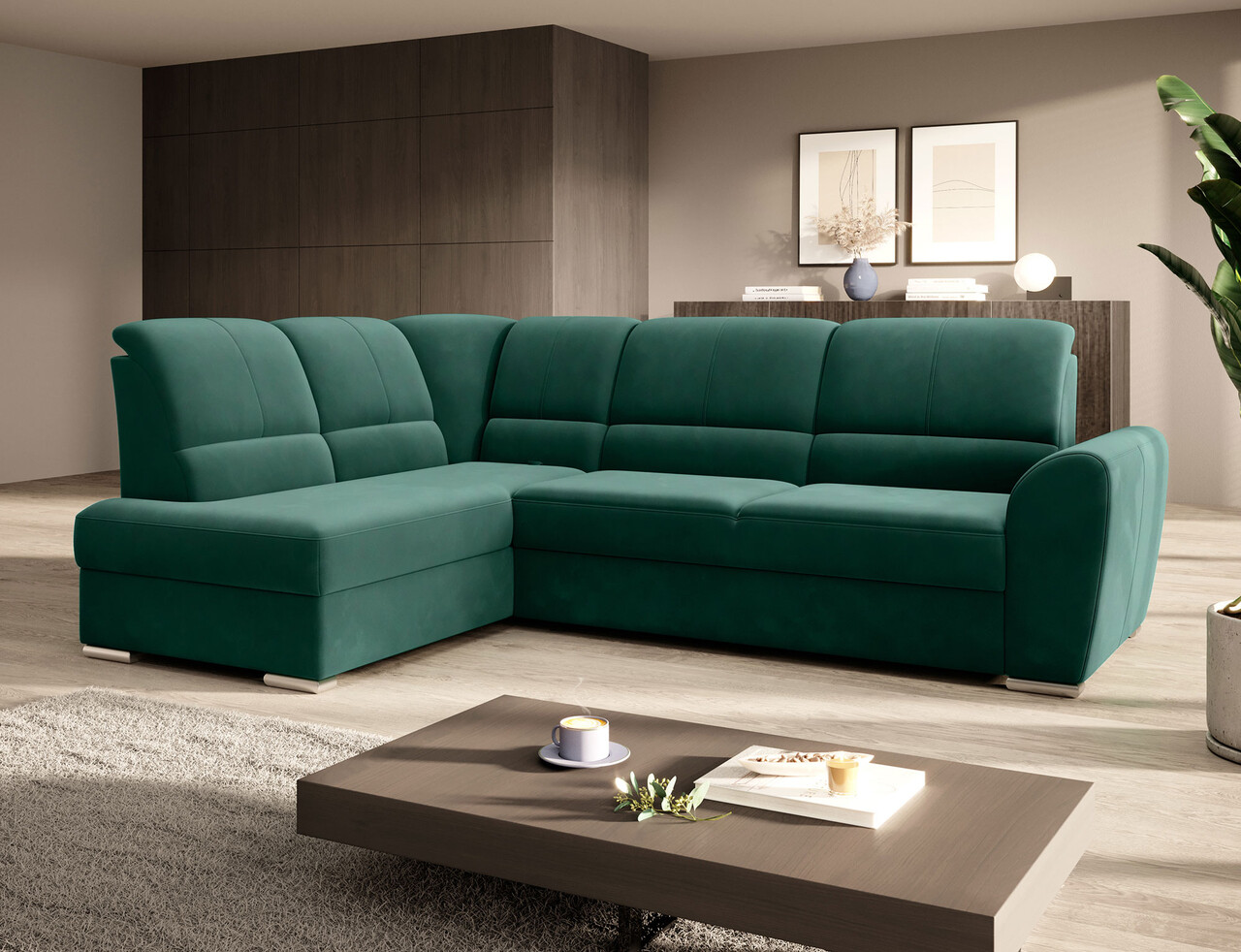 Coltar extensibil stanga 3 locuri ELTAP, LT-35LU, Siber, 270x186x93 cm, lemn/poliester, verde inchis