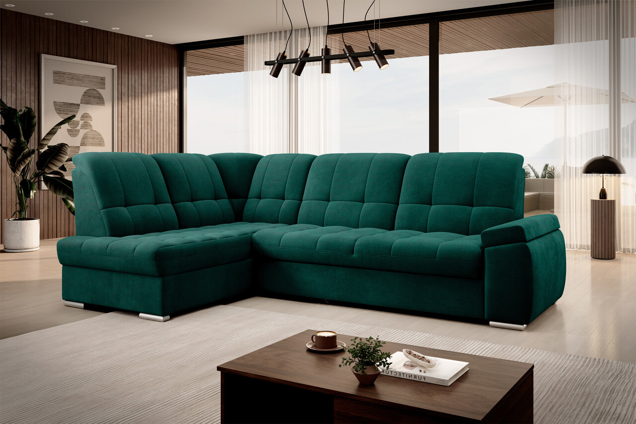 Coltar extensibil stanga 3 locuri ELTAP, LT-35NU, Sado, 272x192x95 cm, lemn/poliester, verde inchis