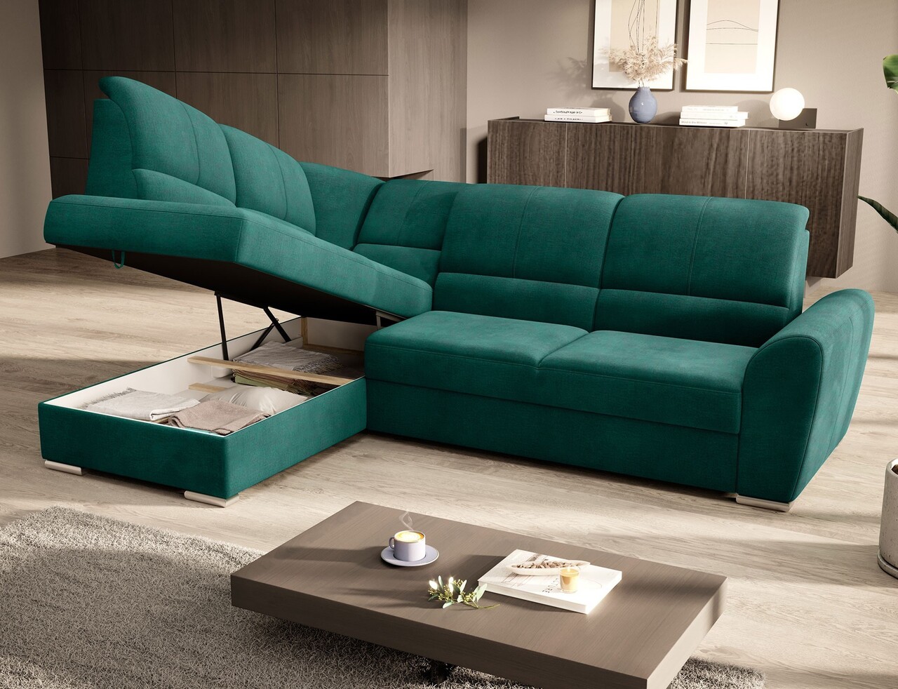 Coltar extensibil stanga 3 locuri ELTAP, LT-35NU, Siber, 270x186x93 cm, lemn/poliester, verde inchis