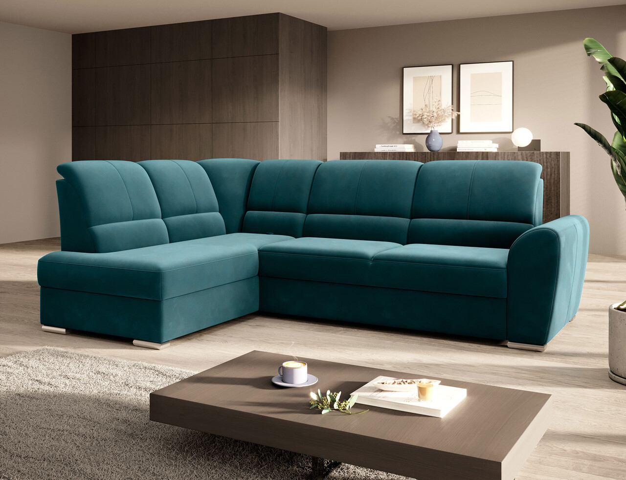 Coltar extensibil stanga 3 locuri ELTAP, LT-39LU, Siber, 270x186x93 cm, lemn/poliester, verde