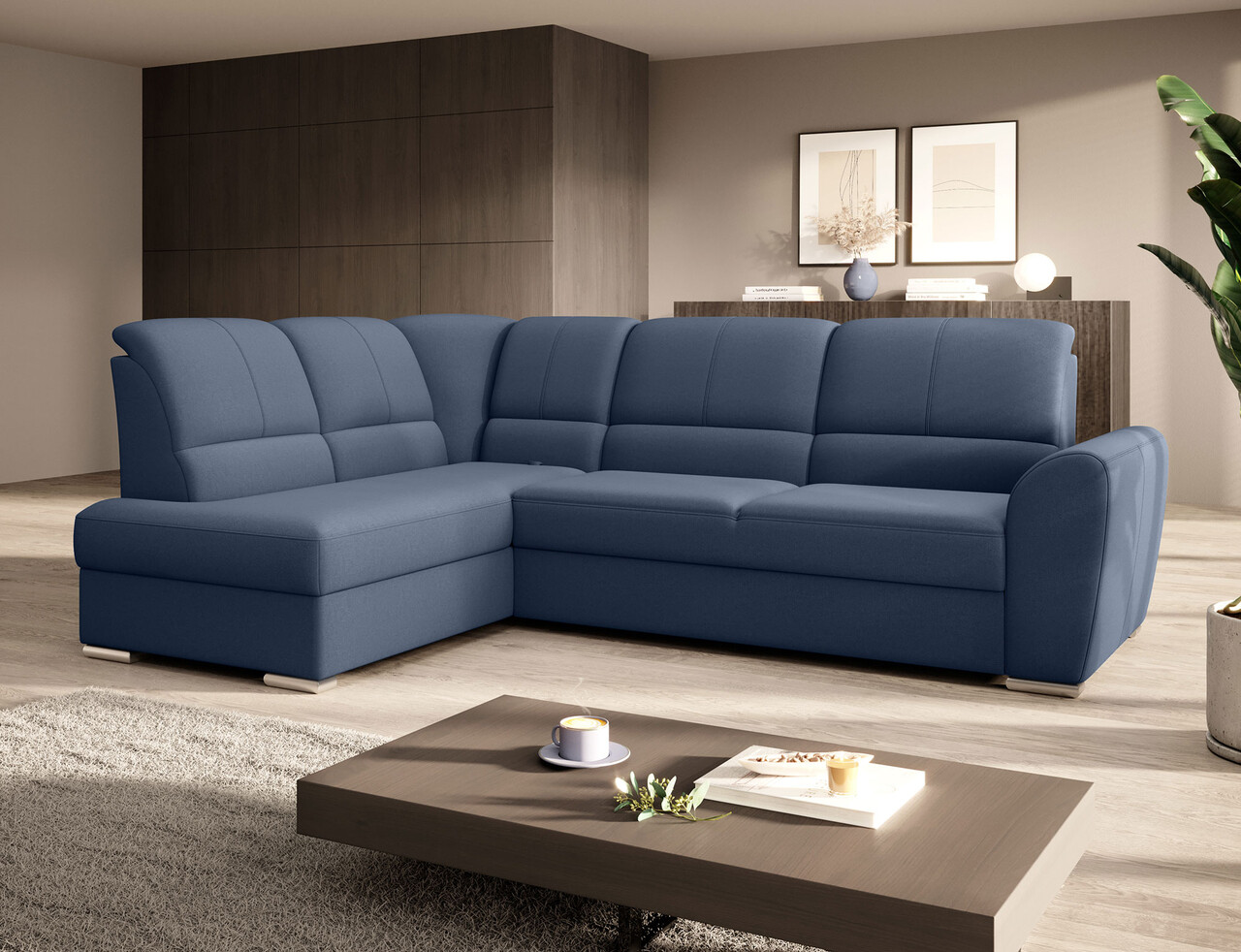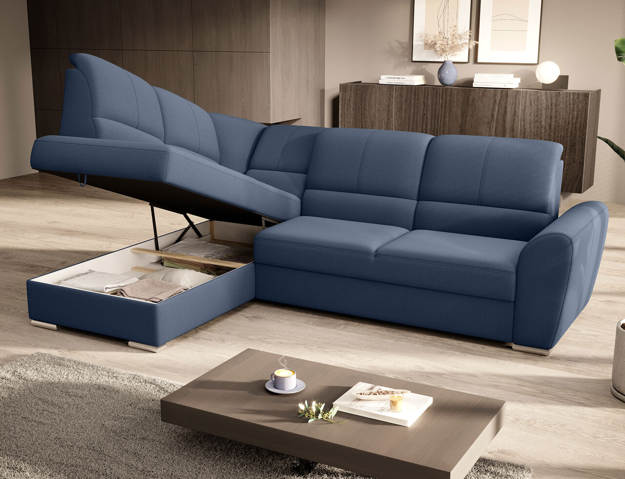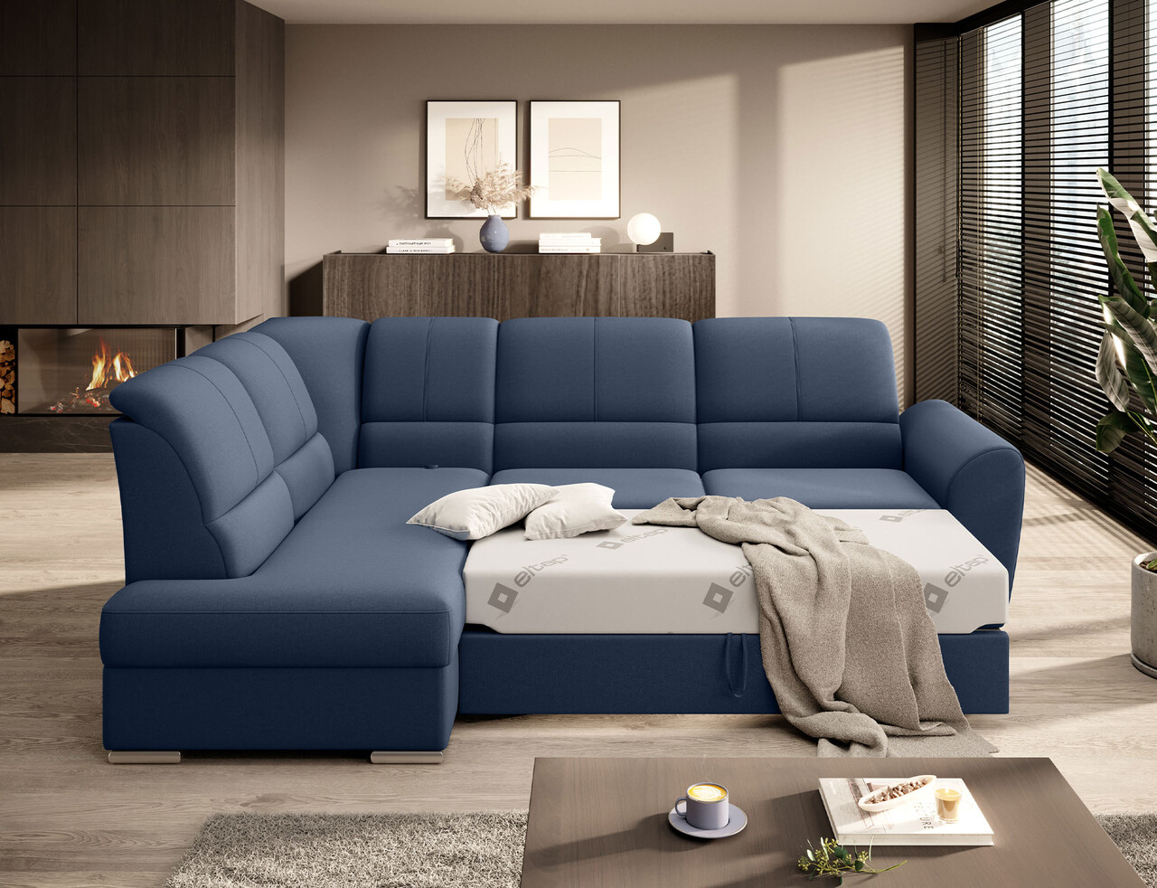 Coltar extensibil stanga 3 locuri ELTAP, LT-40GO, Siber, 270x186x93 cm, lemn/poliester, albastru inchis