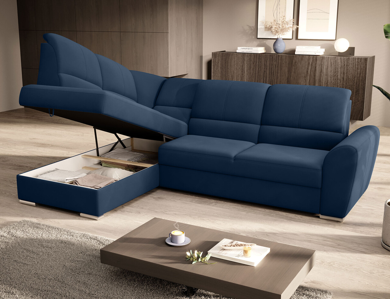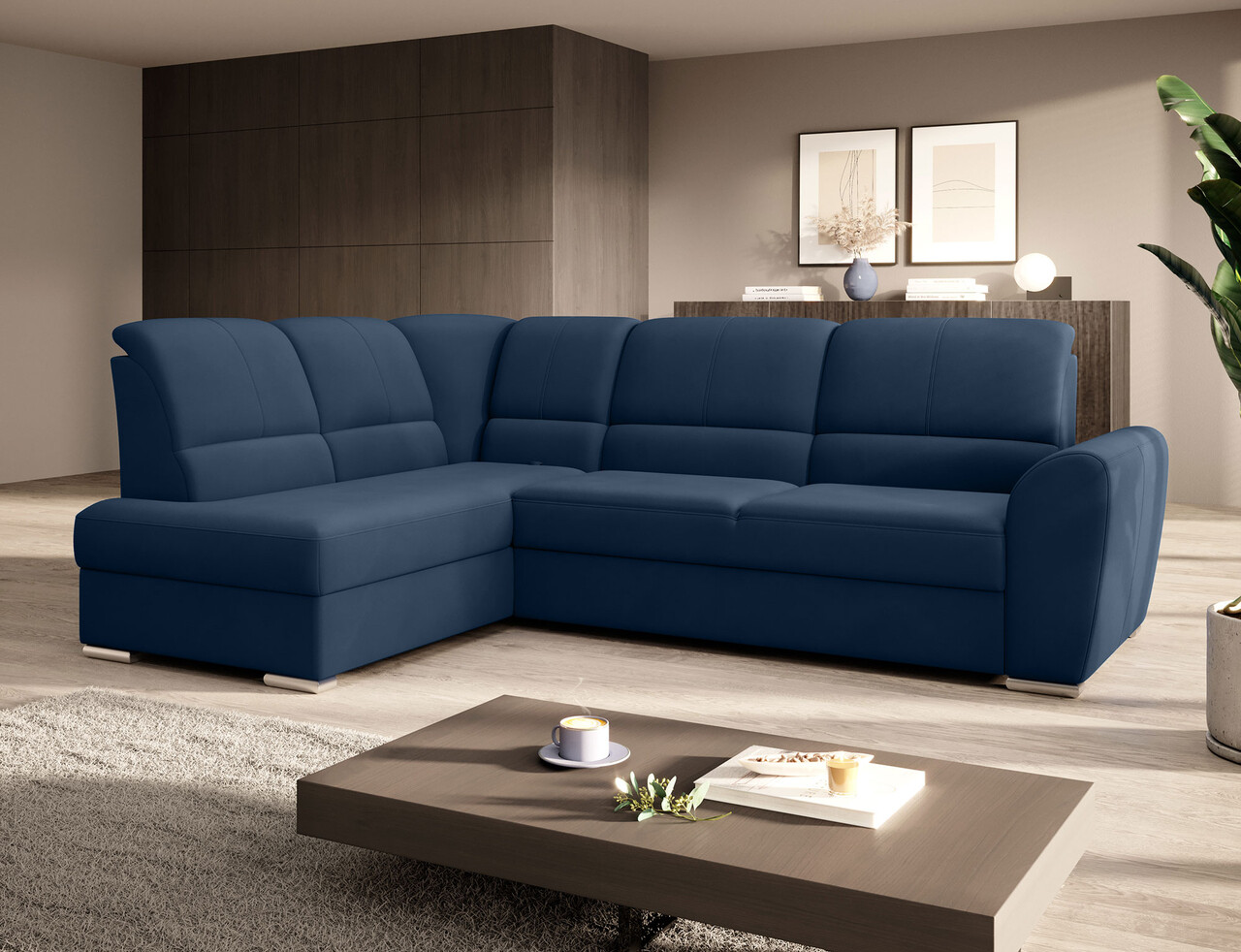Coltar extensibil stanga 3 locuri ELTAP, LT-40LO, Siber, 270x186x93 cm, lemn/poliester, albastru inchis