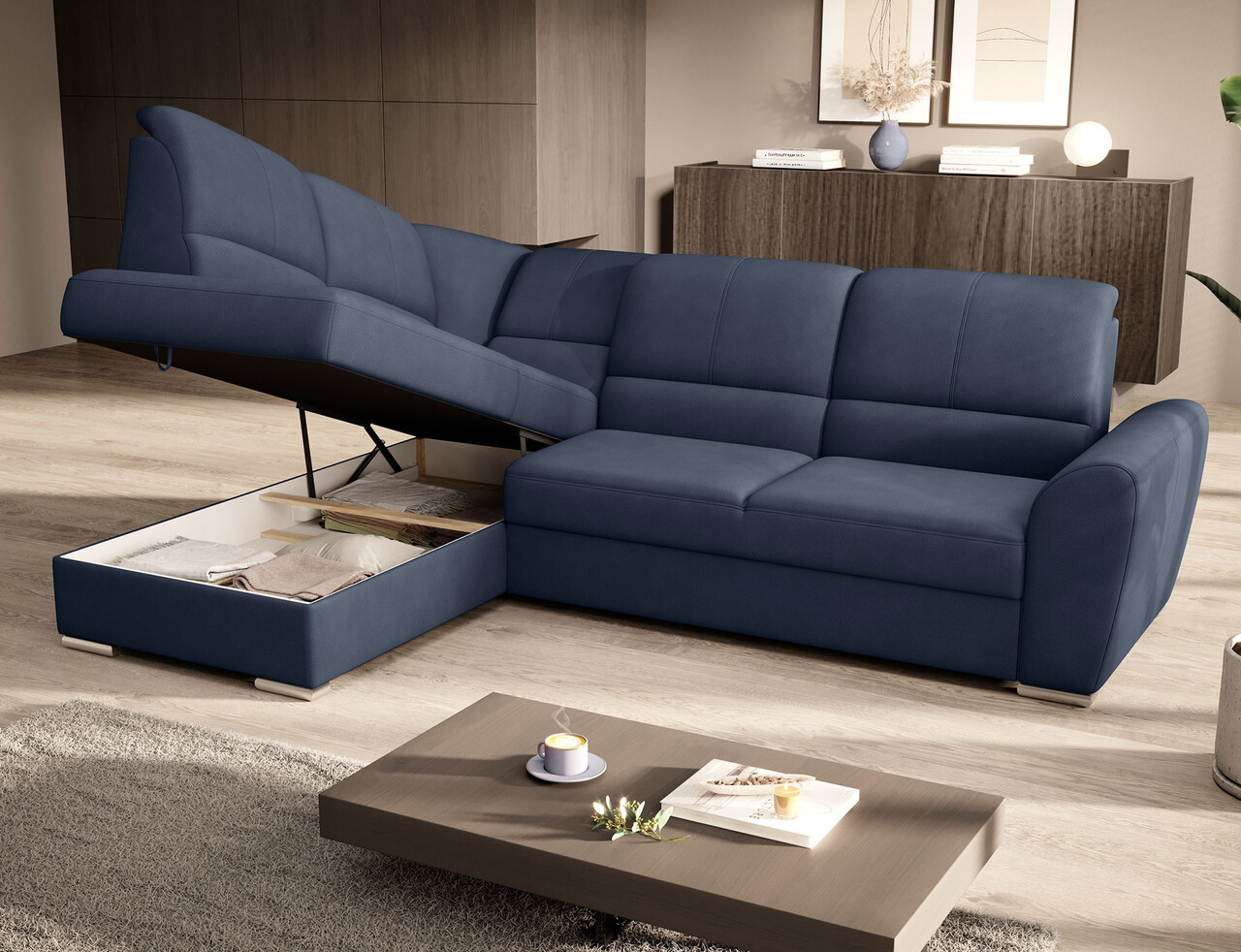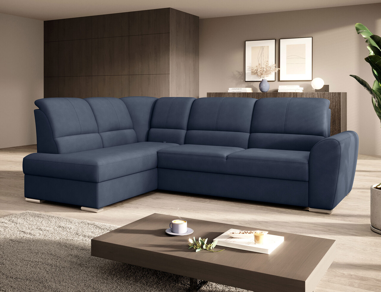 Coltar extensibil stanga 3 locuri ELTAP, LT-40PO, Siber, 270x186x93 cm, lemn/poliester, albastru inchis