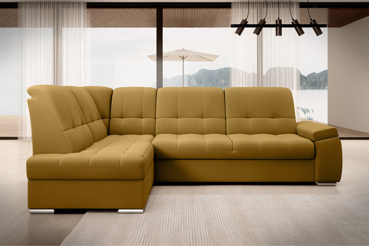 Coltar extensibil stanga 3 locuri ELTAP, LT-45NU, Sado, 272x192x95 cm, lemn/poliester, mustar
