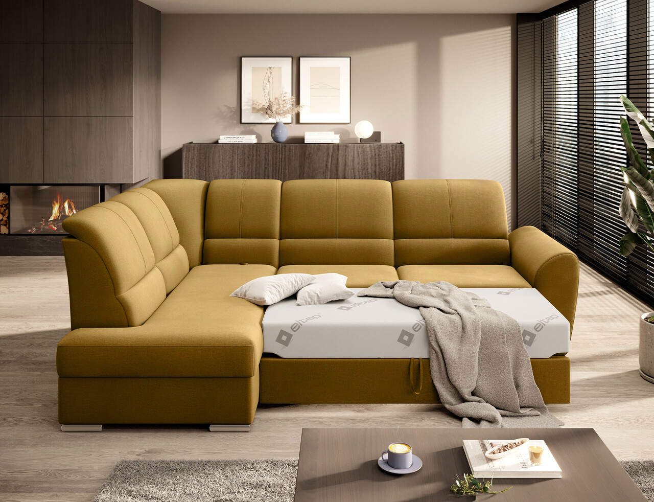 Coltar extensibil stanga 3 locuri ELTAP, LT-45NU, Siber, 270x186x93 cm, lemn/poliester, mustar