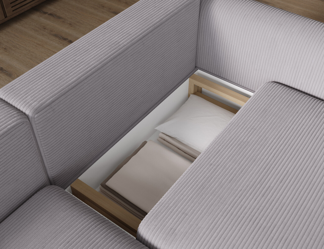 Coltar extensibil stanga 3 locuri ELTAP, LT-O-03JAR, Acossta, 244x154x95 cm, lemn/poliester, gri/natur