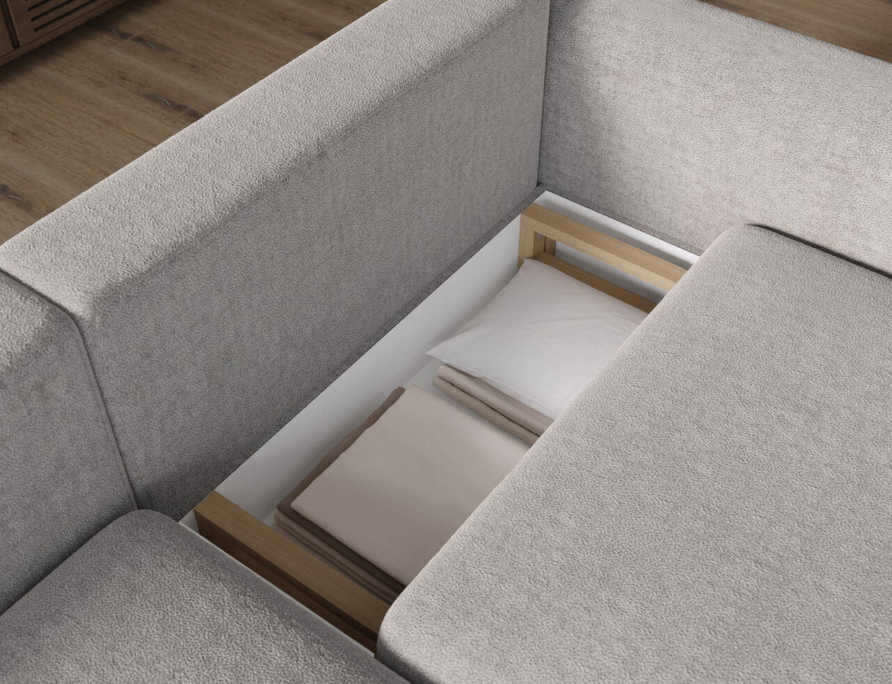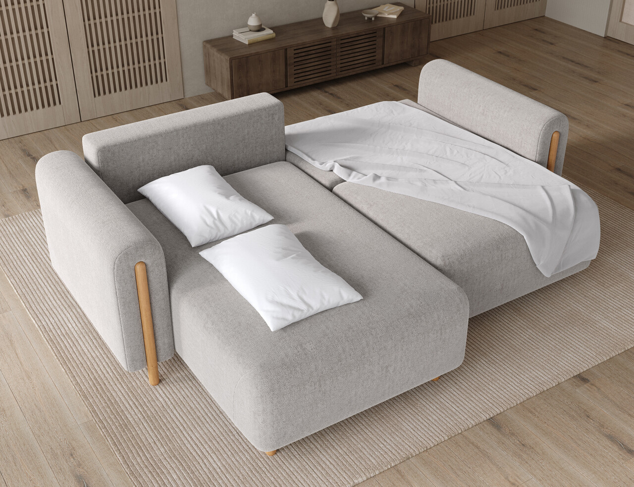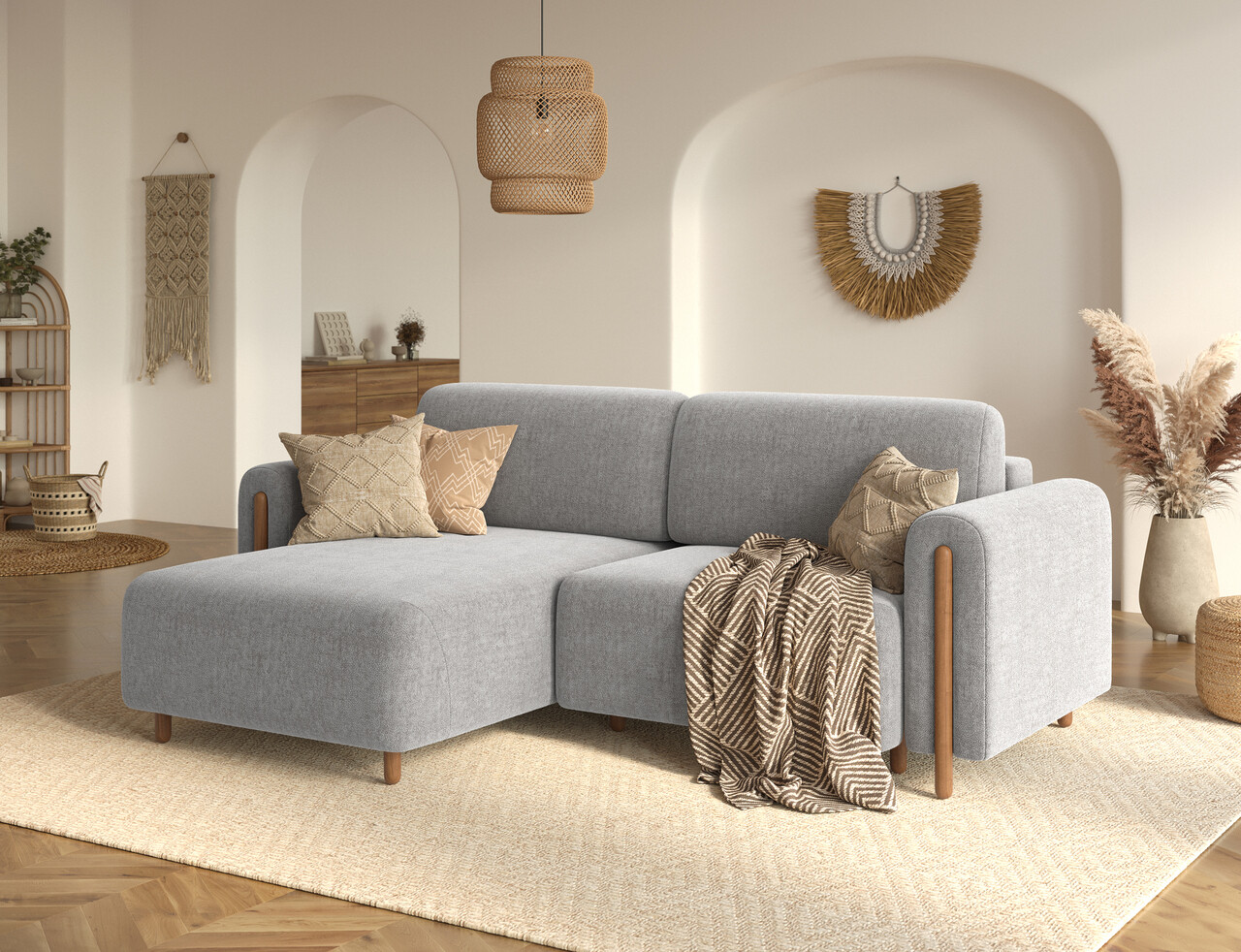 Coltar extensibil stanga 3 locuri ELTAP, LT-O-04AMO, Acossta, 244x154x95 cm, lemn/poliester, gri deschis/natur