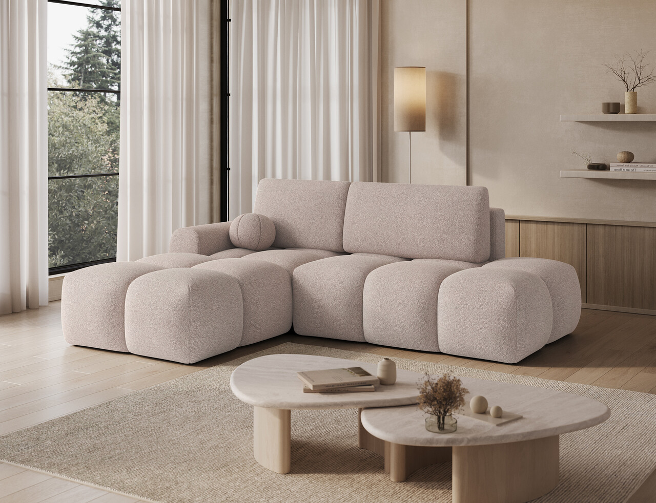 Coltar extensibil stanga 3 locuri ELTAP, Vittario, 227x170x95 cm, lemn/poliester, maro deschis