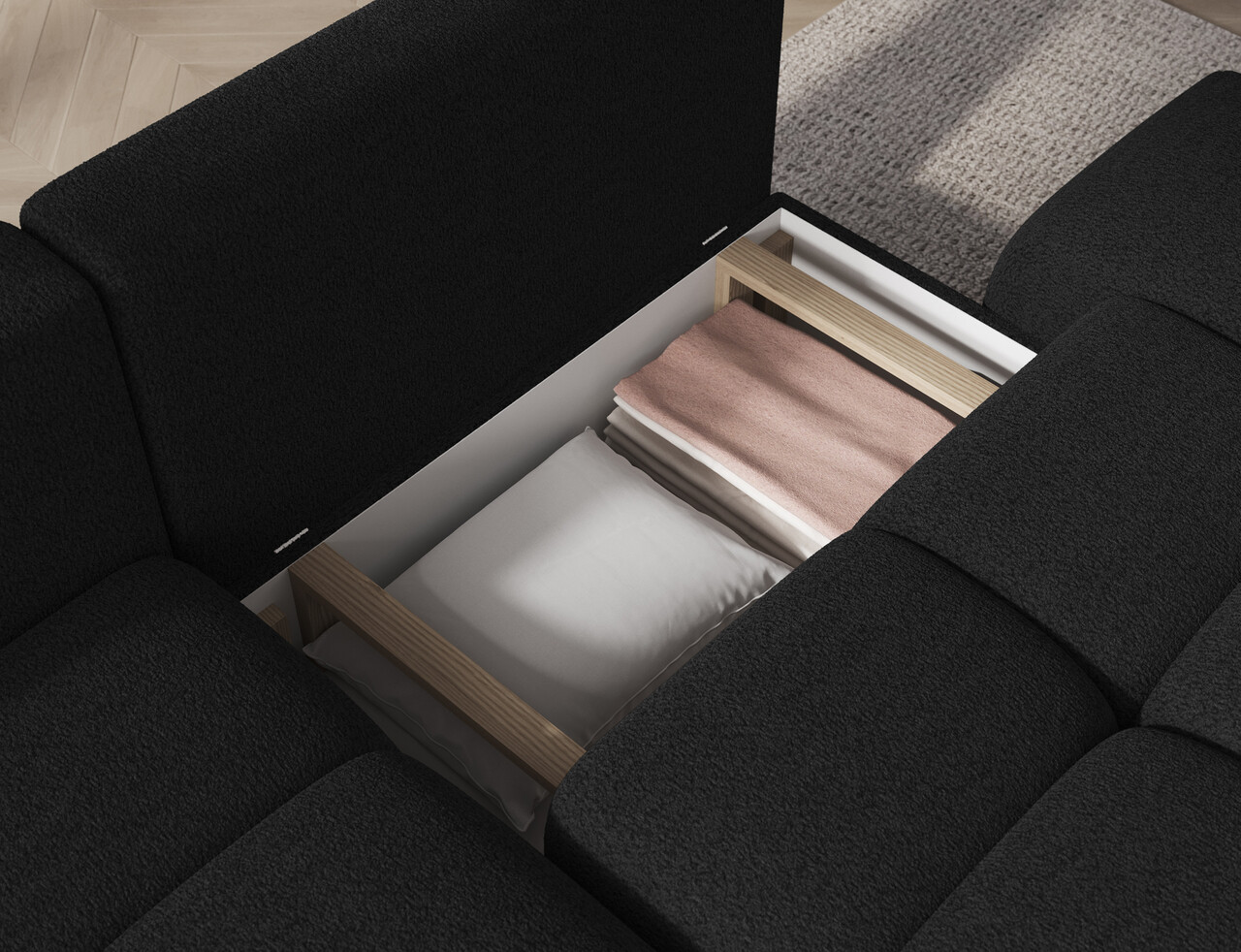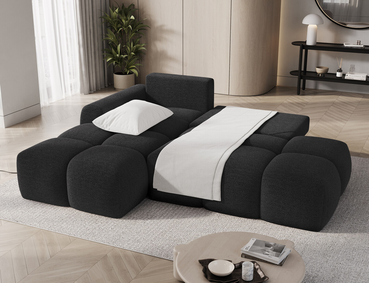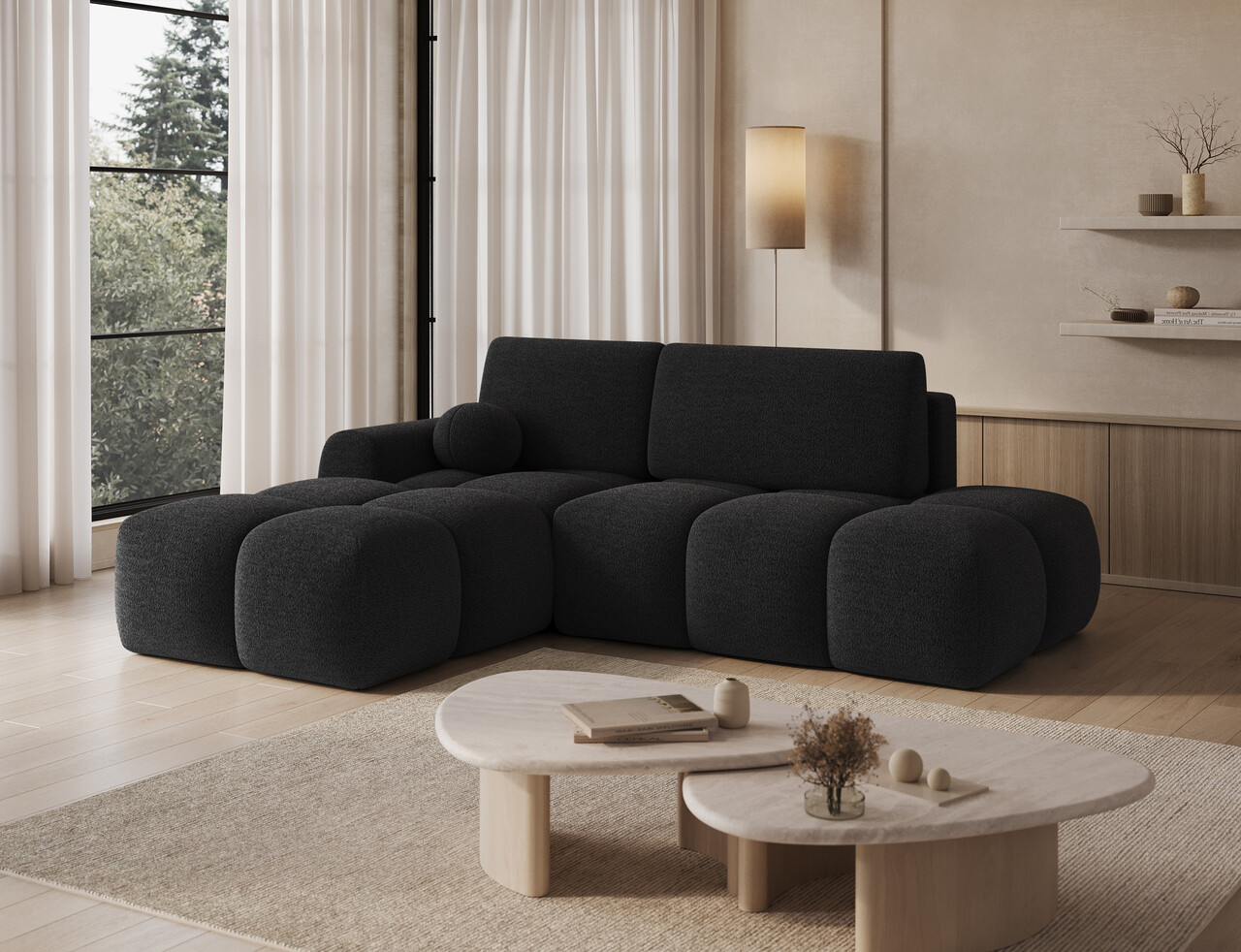 Coltar extensibil stanga 3 locuri ELTAP, Vittario, 227x170x95 cm, lemn/poliester, gri antracit