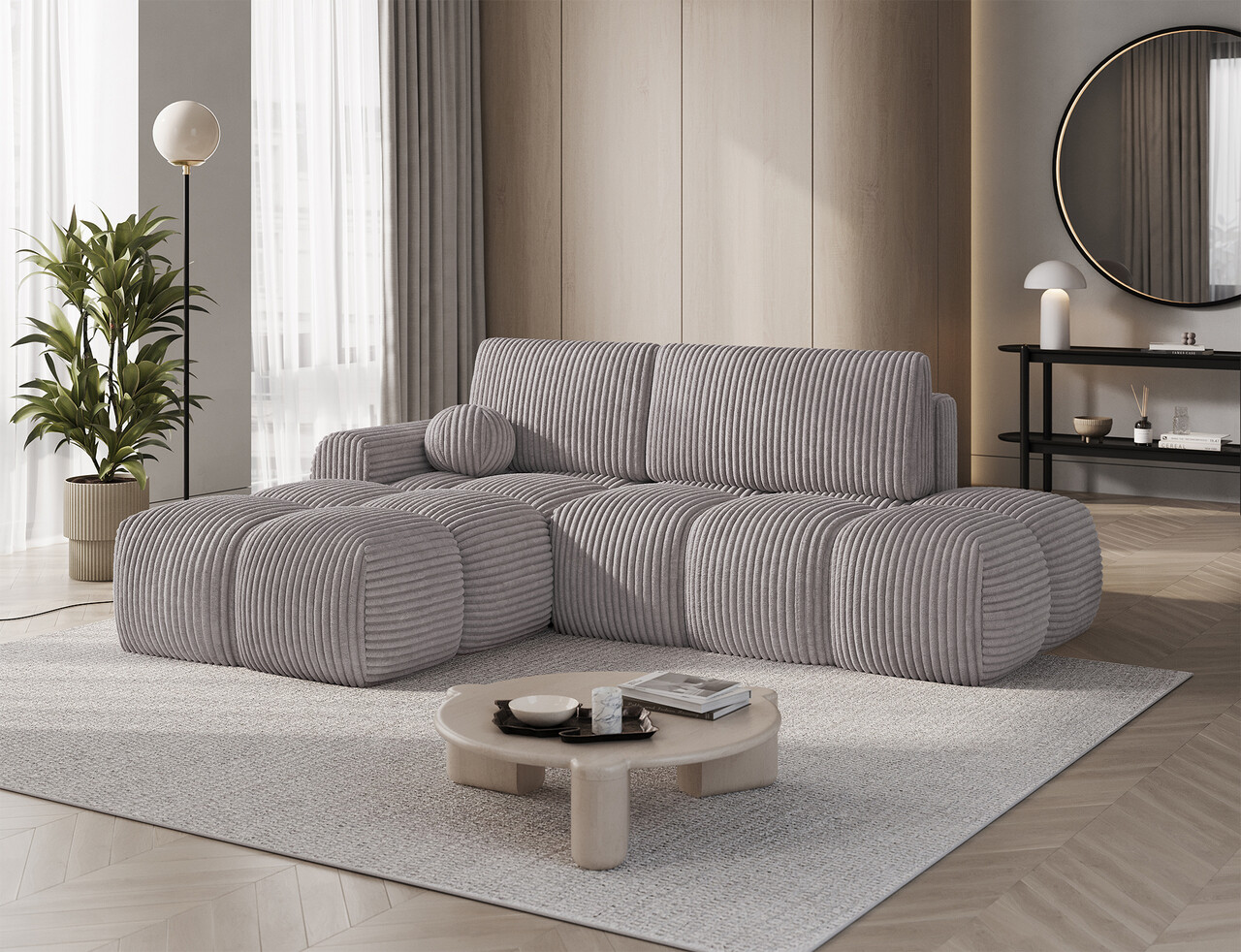Coltar extensibil stanga 3 locuri ELTAP, Vittario, 227x170x95 cm, lemn/poliester, gri