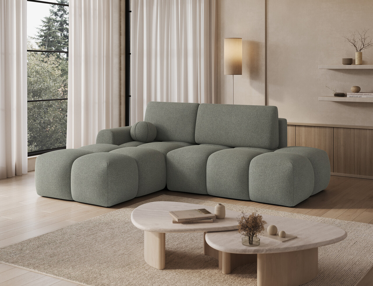 Coltar extensibil stanga 3 locuri ELTAP, Vittario, 227x170x95 cm, lemn/poliester, verde olive