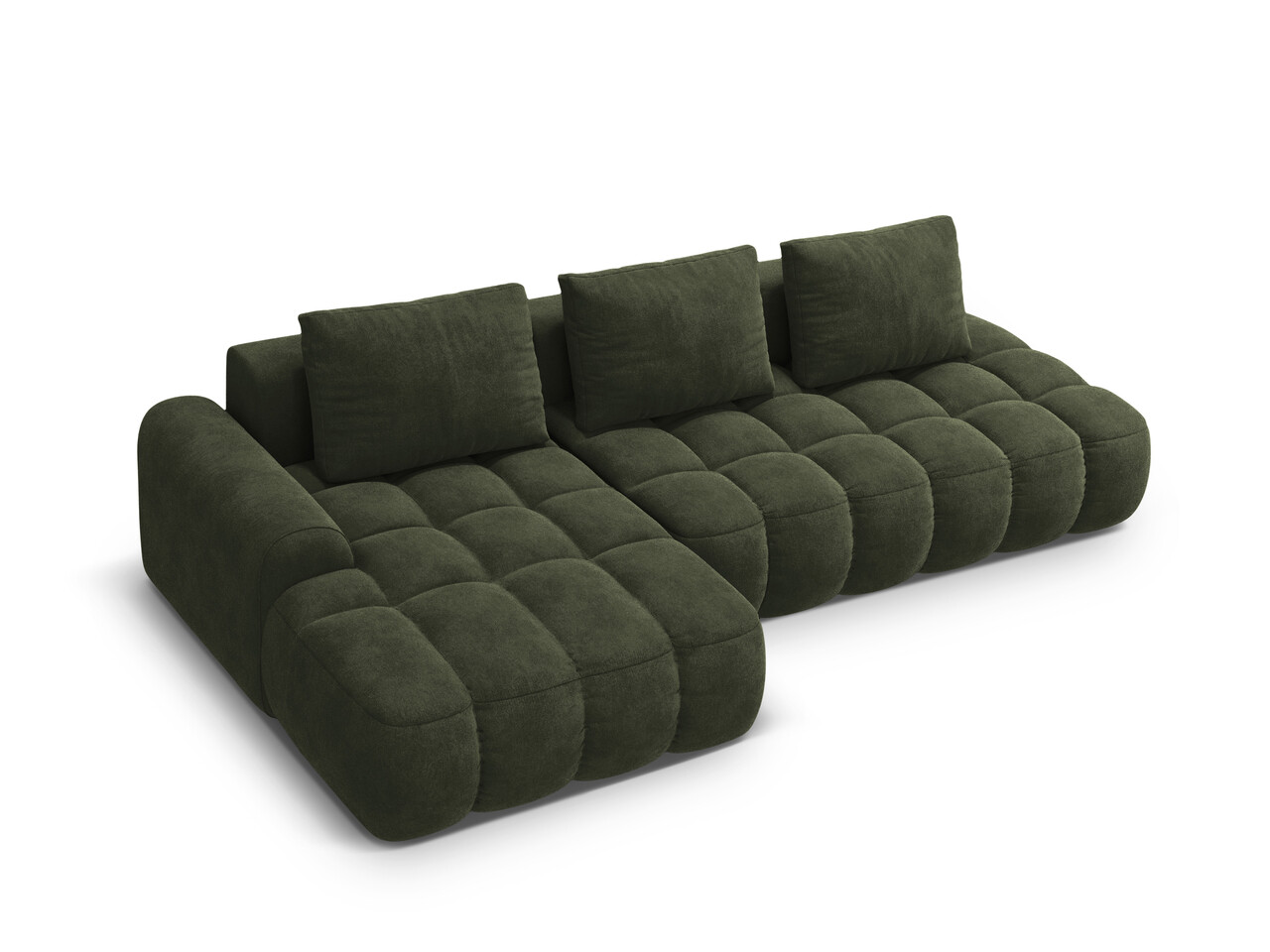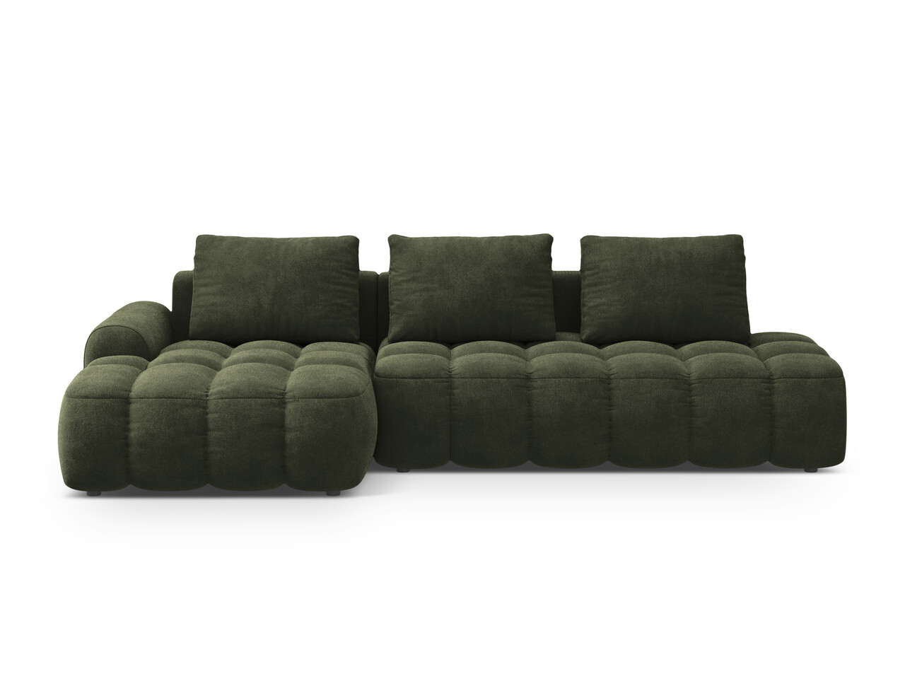 Coltar extensibil stanga 3 locuri, Linz, Cosmopolitan Design, 275x142x84 cm, cotiera dreapta, catifea, verde