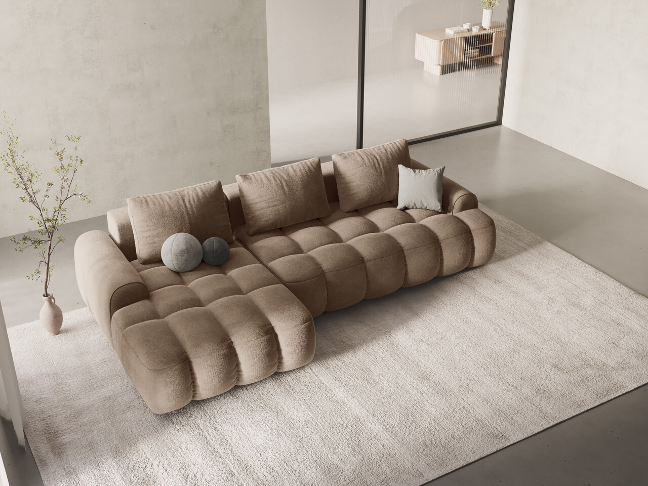 Coltar extensibil stanga 3 locuri, Linz, Cosmopolitan Design, 275x142x84 cm, catifea, bej inchis