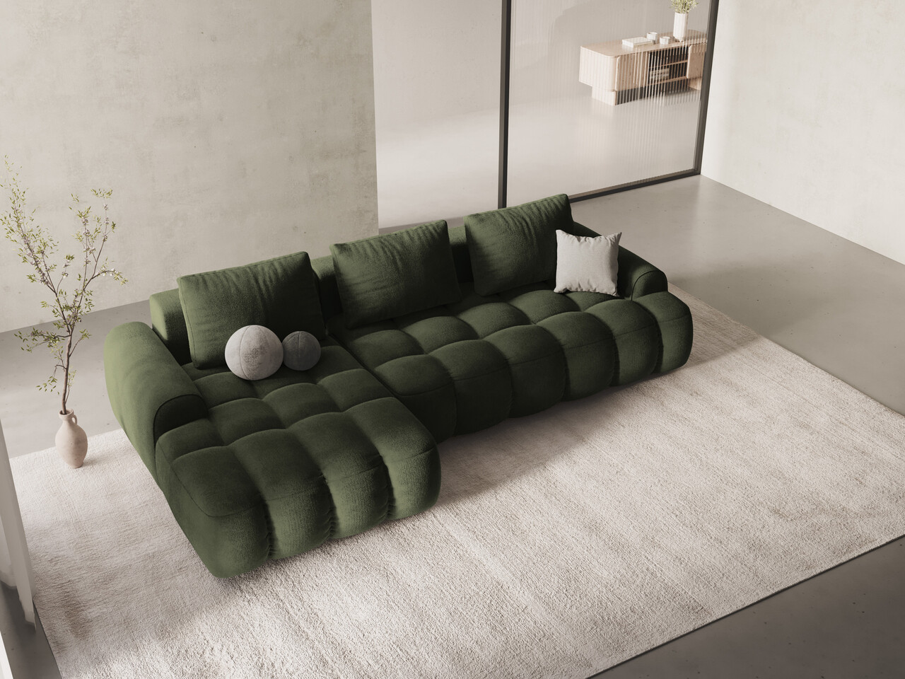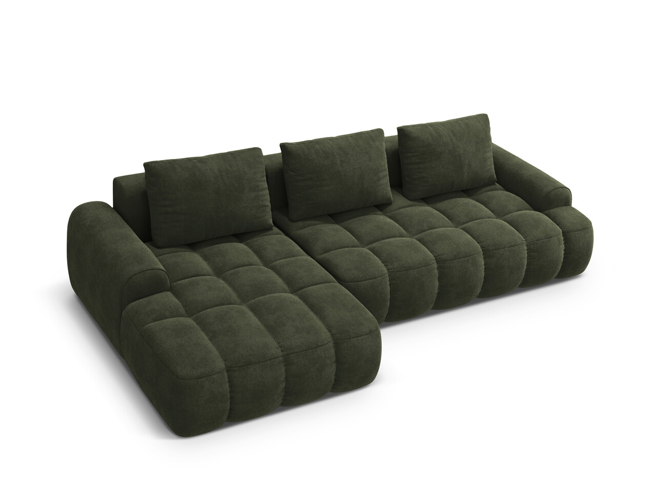 Coltar extensibil stanga 3 locuri, Linz, Cosmopolitan Design, 275x142x84 cm, catifea, verde