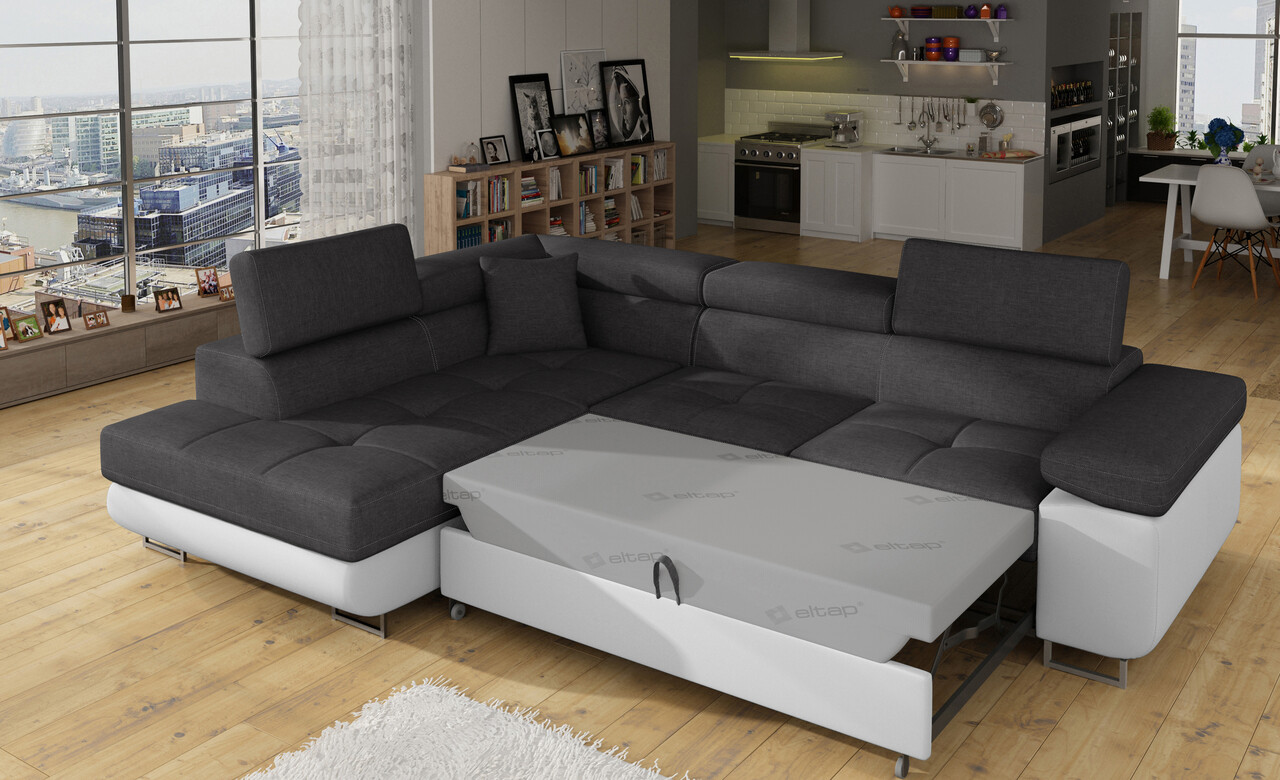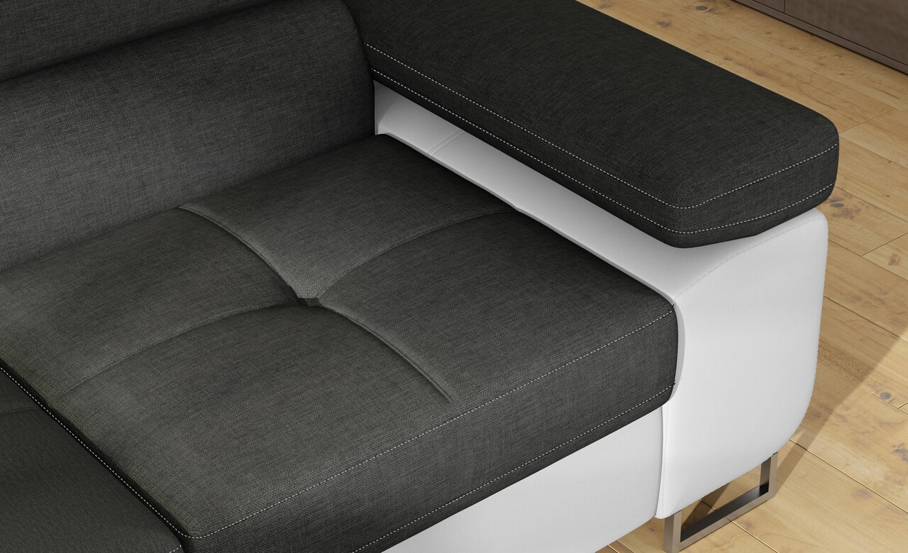 Coltar extensibil stanga 4 locuri, ELTAP, Anton, 272x203x85 cm, lemn/poliester, gri inchis/alb