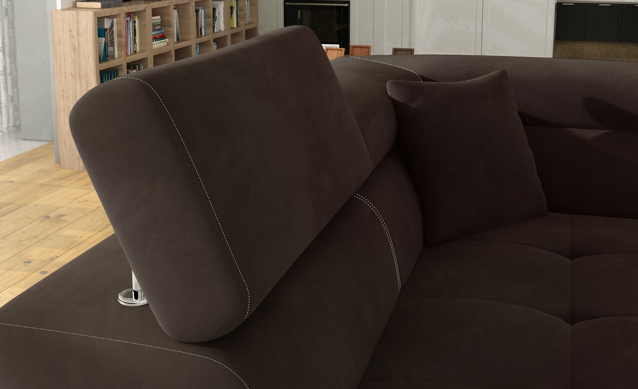 Pentru un confort maxim, coltarul Anton este dotat cu tetiere inalte si reglabile, brate late de 28 cm si picioare metalice elegante, cu o inaltime de 9 cm, asigurand astfel un design modern si stabilitate optima.
