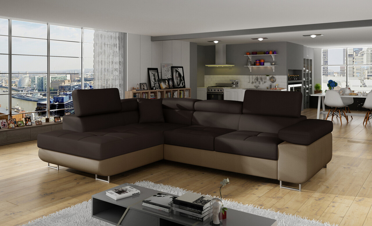 Coltar extensibil stanga 4 locuri, ELTAP, Anton, 272x203x85 cm, lemn/poliester, maro inchis/maro