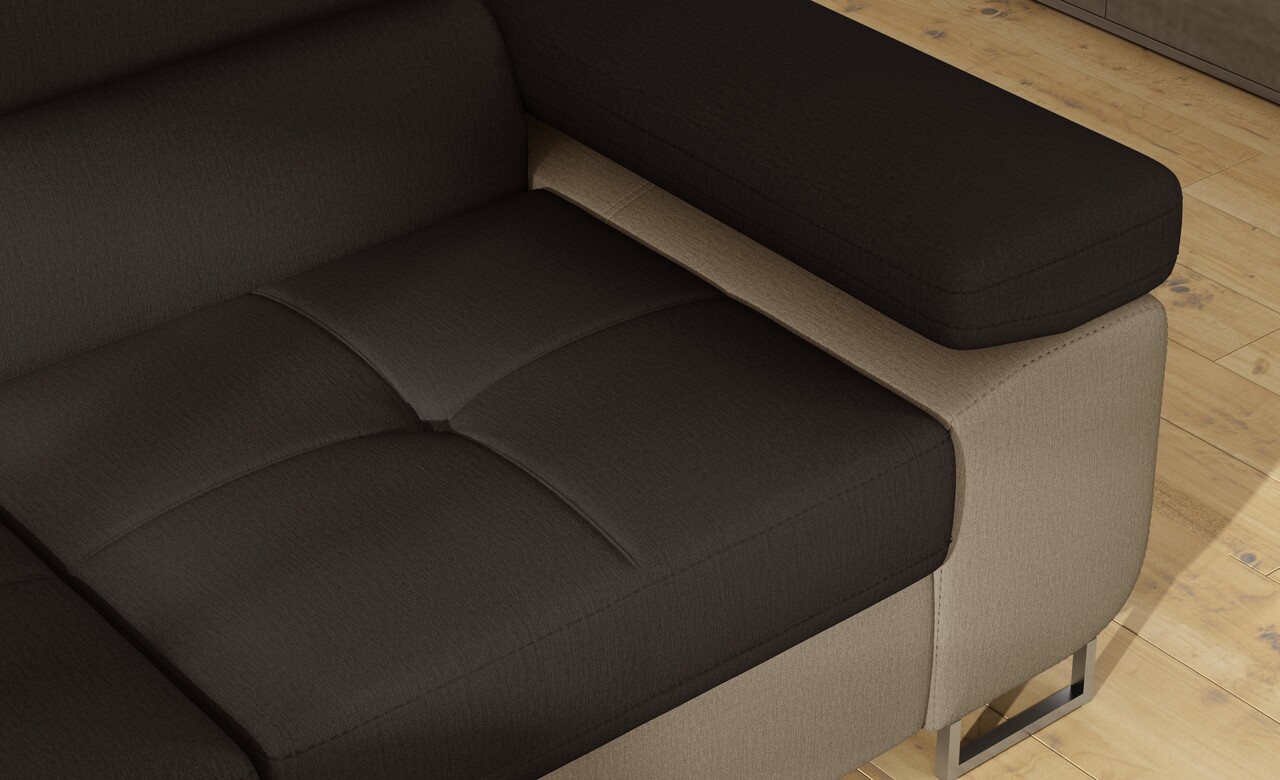 Pentru un confort maxim, coltarul Anton este dotat cu tetiere inalte si reglabile, brate late de 28 cm si picioare metalice elegante, cu o inaltime de 9 cm, asigurand astfel un design modern si stabilitate optima.