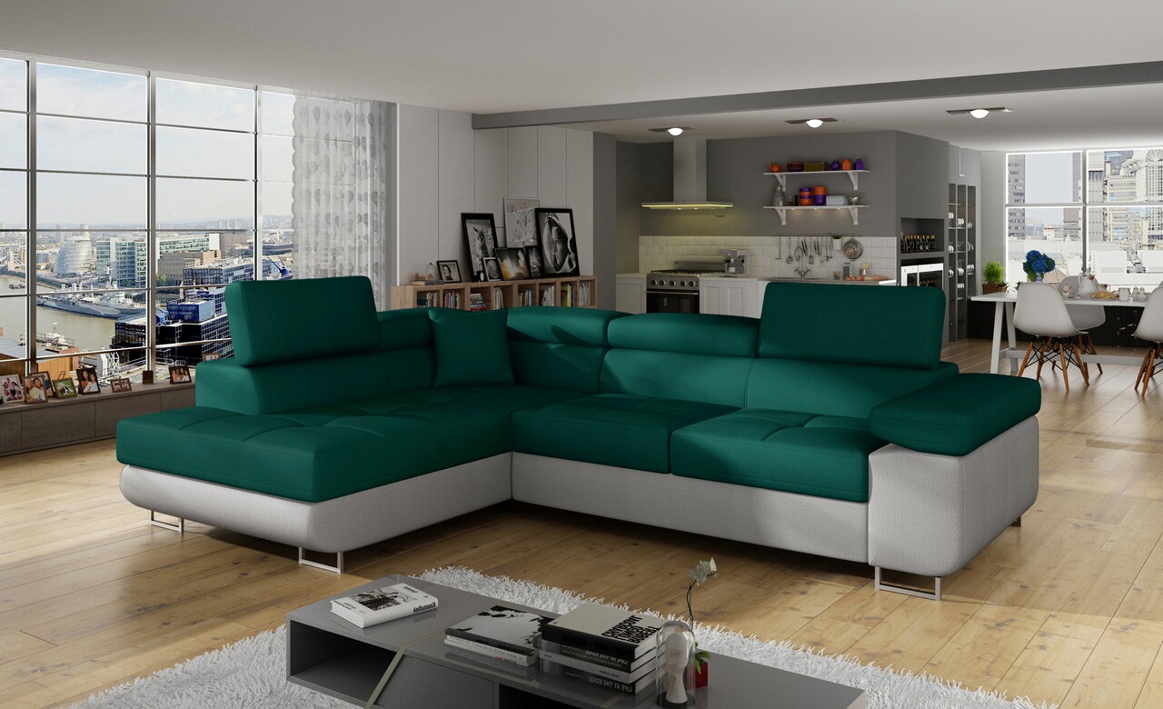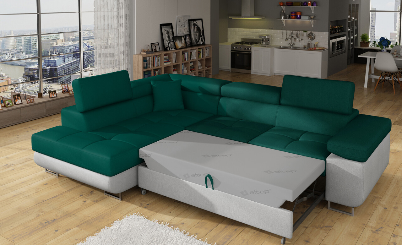 Coltar extensibil stanga 4 locuri, ELTAP, Anton, 272x203x85 cm, lemn/poliester, verde/gri