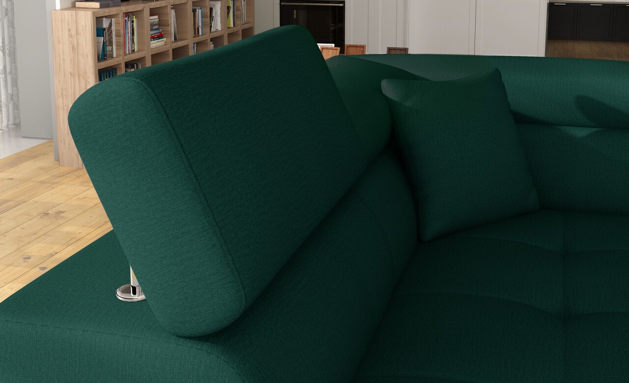 Pentru un confort maxim, coltarul Anton este dotat cu tetiere inalte si reglabile, brate late de 28 cm si picioare metalice elegante, cu o inaltime de 9 cm, asigurand astfel un design modern si stabilitate optima.