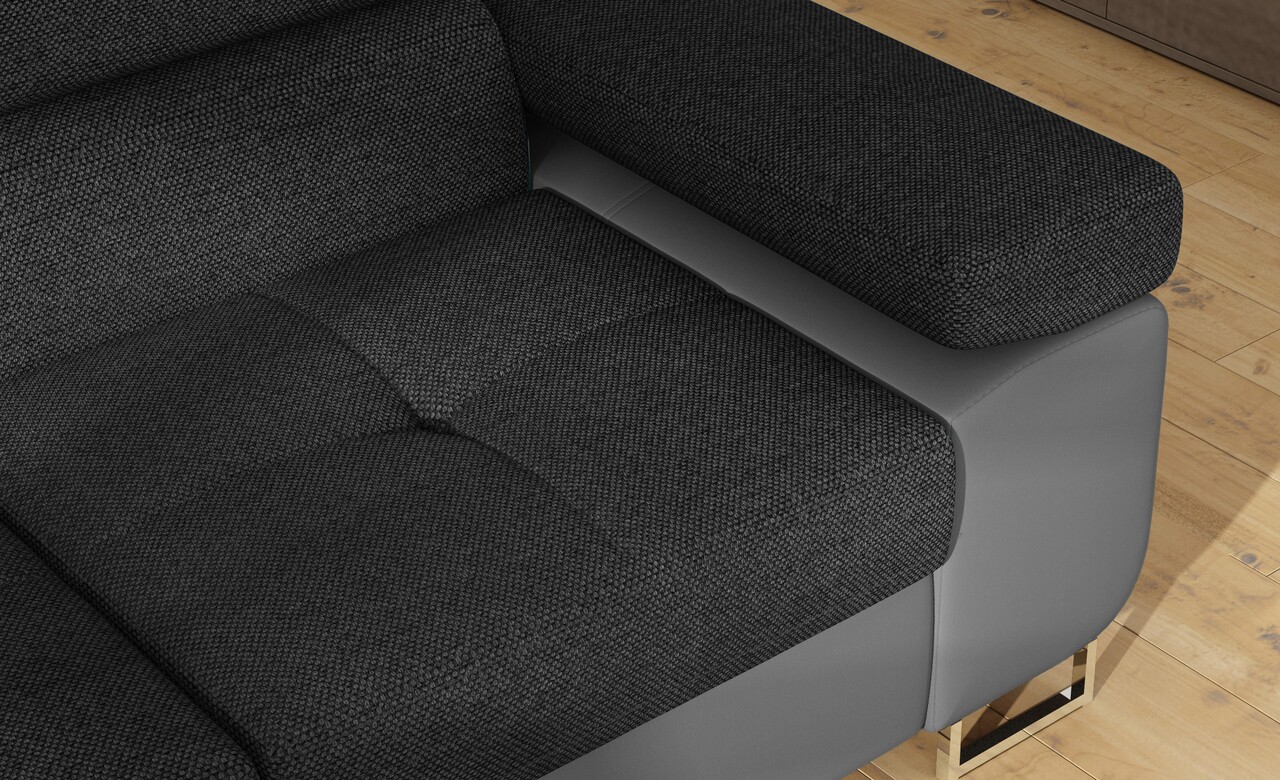 Pentru un confort maxim, coltarul Anton este dotat cu tetiere inalte si reglabile, brate late de 28 cm si picioare metalice elegante, cu o inaltime de 9 cm, asigurand astfel un design modern si stabilitate optima.