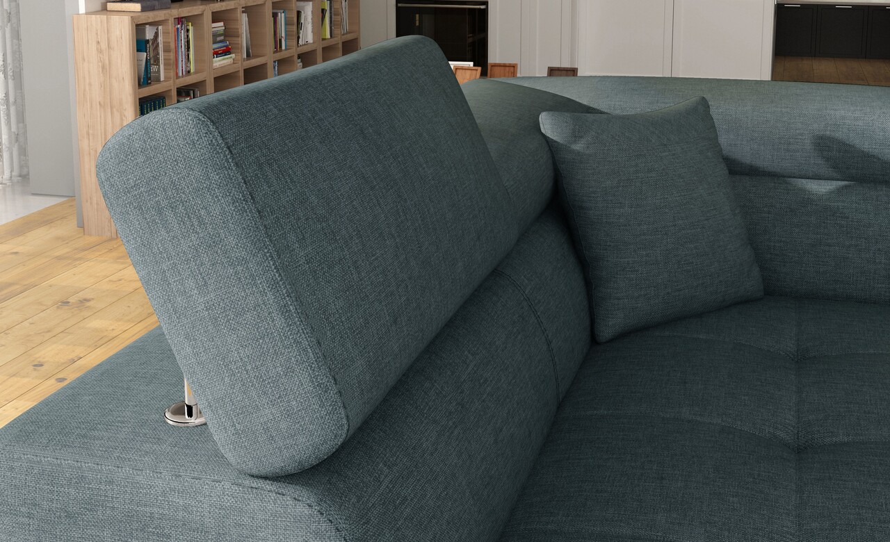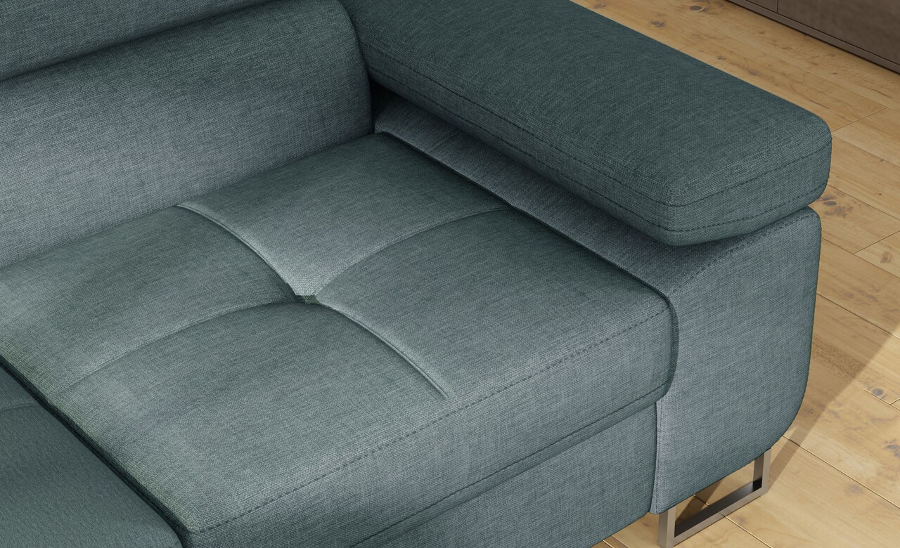 Pentru un confort maxim, coltarul Anton este dotat cu tetiere inalte si reglabile, brate late de 28 cm si picioare metalice elegante, cu o inaltime de 9 cm, asigurand astfel un design modern si stabilitate optima.