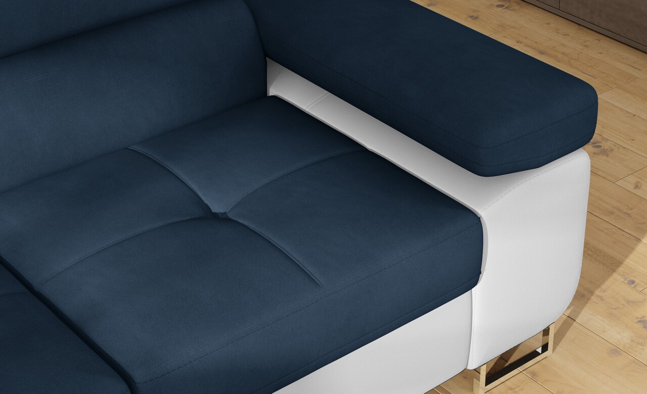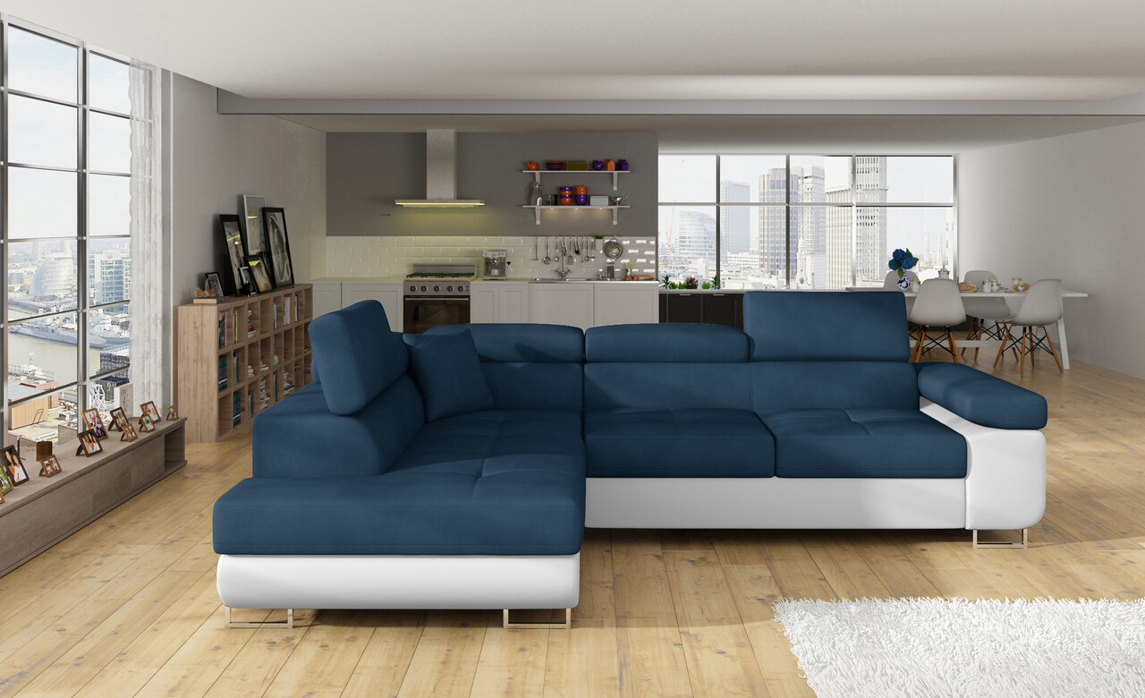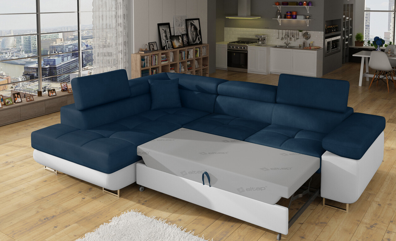Coltar extensibil stanga 4 locuri, ELTAP, Anton, 272x203x85 cm, lemn/poliester, bleumarin/alb
