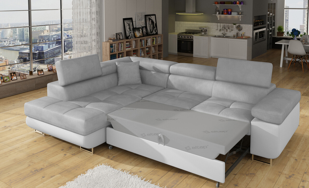 Coltar extensibil stanga 4 locuri, ELTAP, Anton, 272x203x85 cm, lemn/poliester, gri deschis/alb