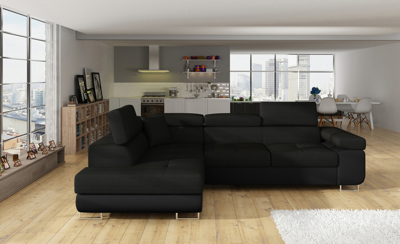 Coltar extensibil stanga 4 locuri, ELTAP, Anton, 272x203x85 cm, lemn/poliester, negru
