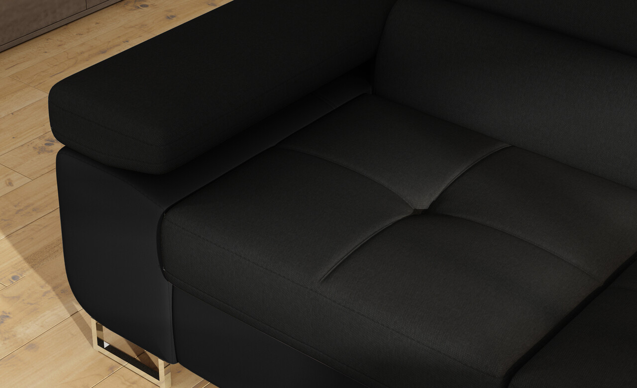 Pentru un confort maxim, coltarul Anton este dotat cu tetiere inalte si reglabile, brate late de 28 cm si picioare metalice elegante, cu o inaltime de 9 cm, asigurand astfel un design modern si stabilitate optima.
