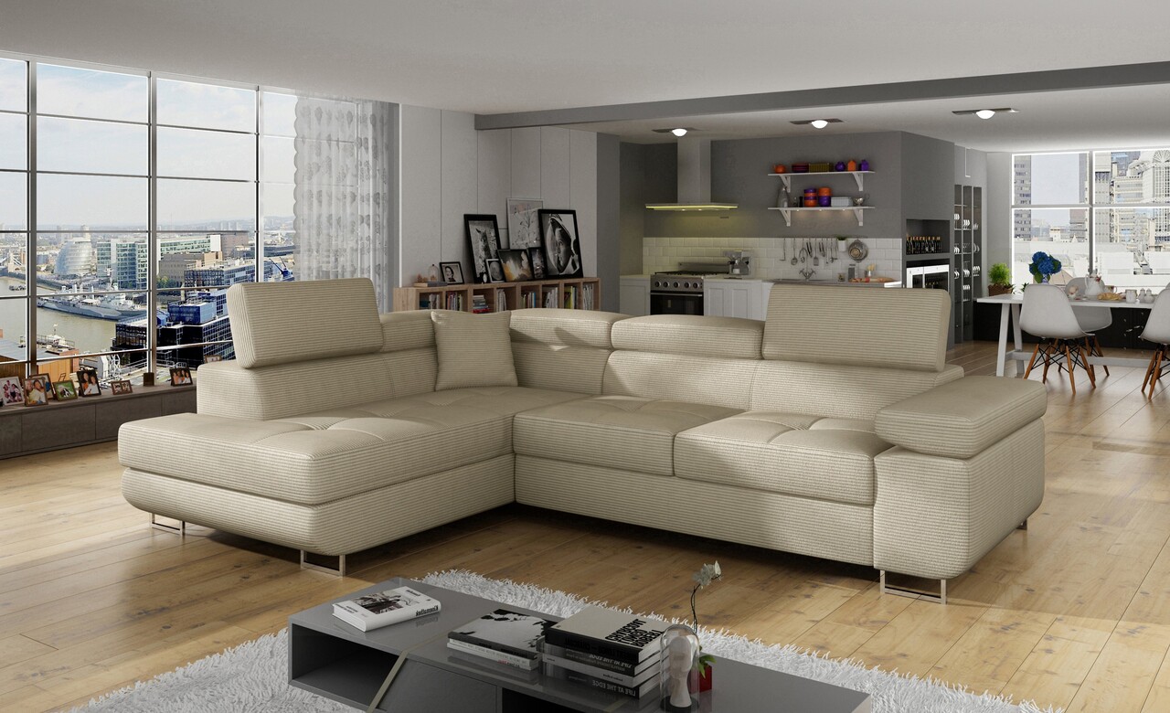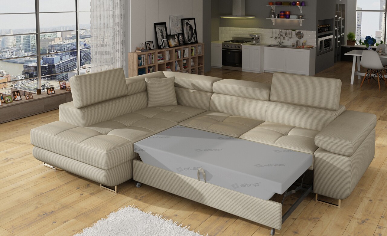 Coltar extensibil stanga 4 locuri, ELTAP, Anton, 272x203x85 cm, lemn/poliester, bej
