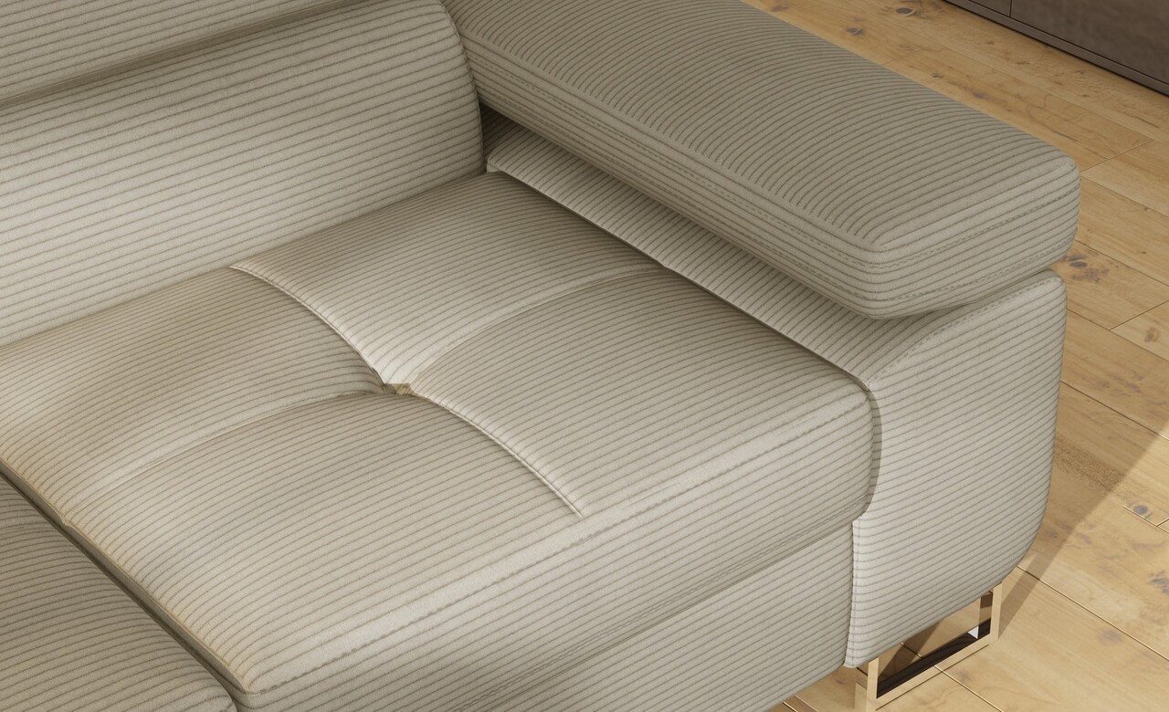 Pentru un confort maxim, coltarul Anton este dotat cu tetiere inalte si reglabile, brate late si picioare metalice elegante, cu o inaltime de 9 cm, asigurand astfel un design modern si stabilitate optima.