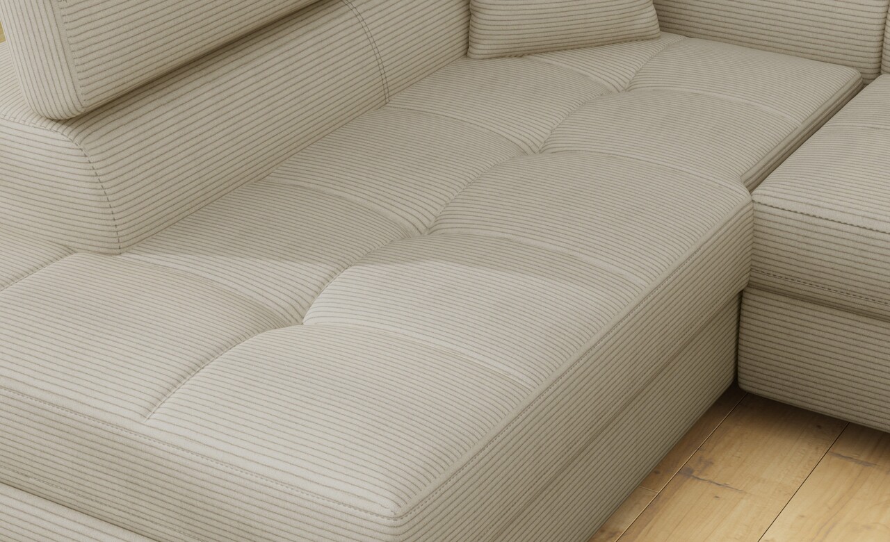 Unul dintre principalele sale avantaje este functia de extensie, transformandu-se cu usurinta intr-un pat confortabil, cu o suprafata generoasa pentru dormit. De asemenea, coltarul este echipat cu un compartiment spatios pentru depozitarea lenjeriei, oferind astfel un plus de functionalitate.
