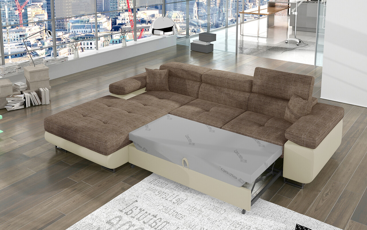Coltar extensibil stanga 4 locuri ELTAP, Armd-16, Armando, 289x203x85 cm, lemn/poliester, bej/bej deschis