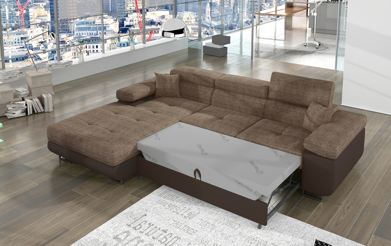 Coltar extensibil stanga 4 locuri ELTAP, Armd-17, Armando, 289x203x85 cm, lemn/poliester, bej inchis/maro