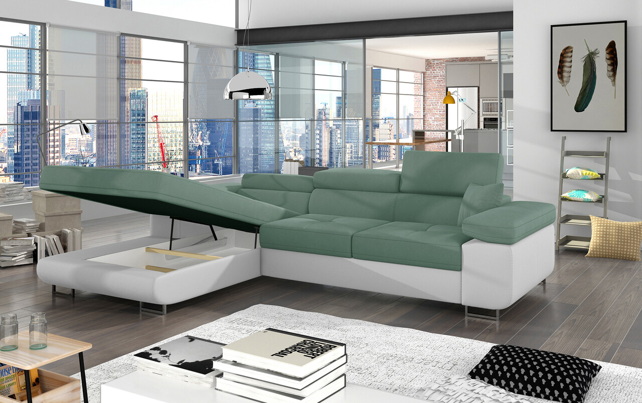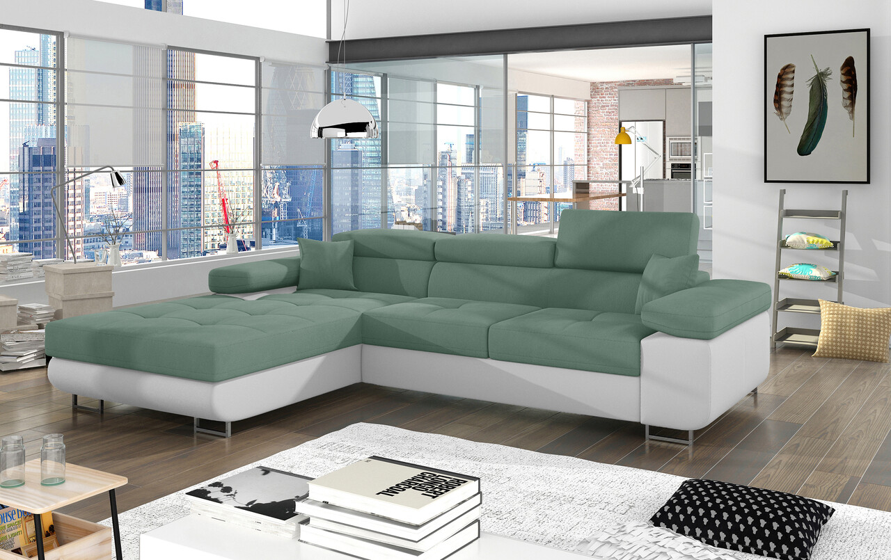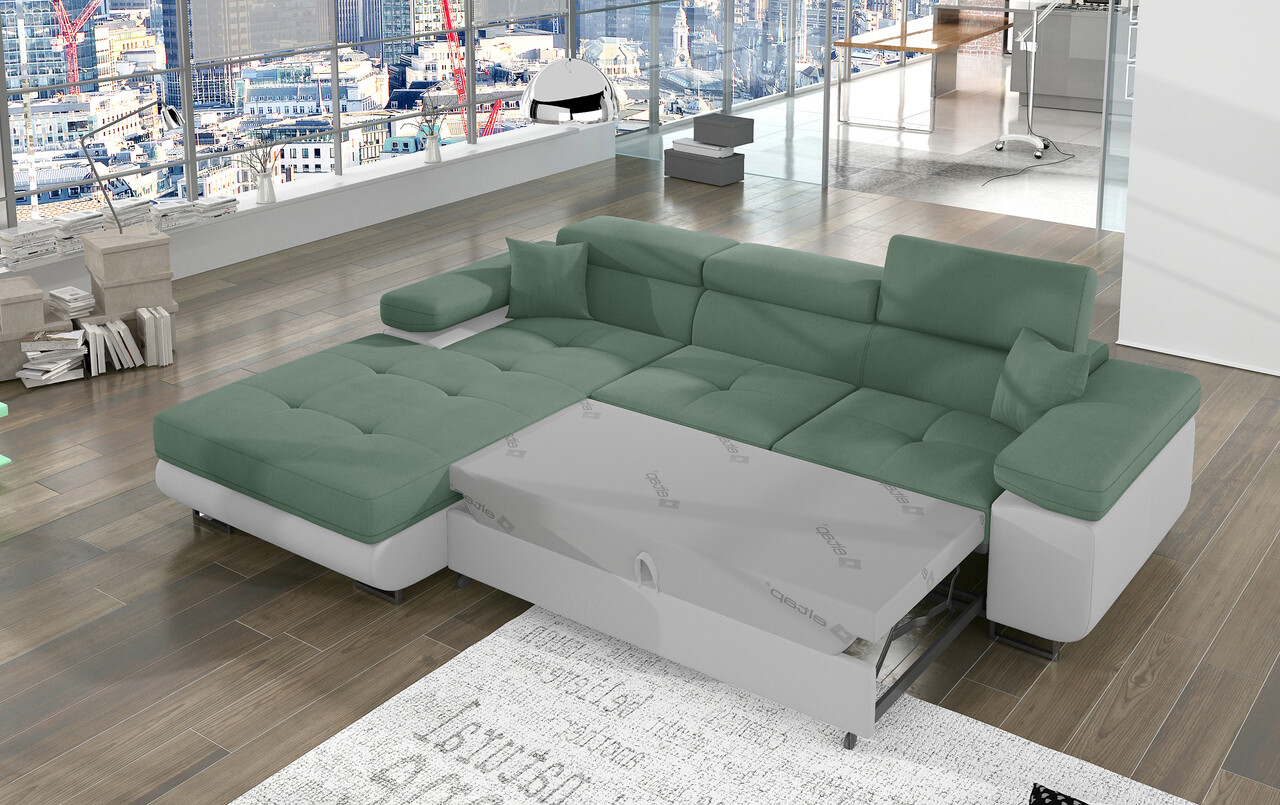 Coltar extensibil stanga 4 locuri ELTAP, Armd-23, Armando, 289x203x85 cm, lemn/poliester, verde/alb