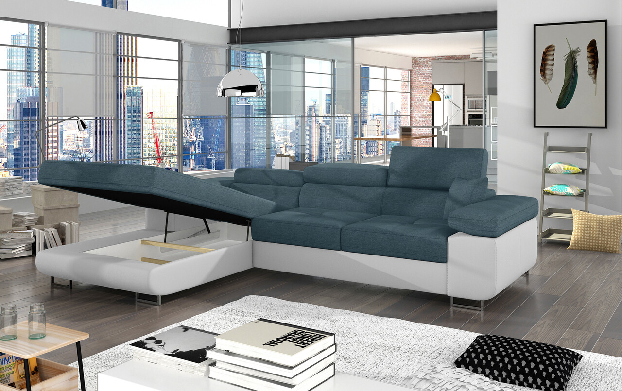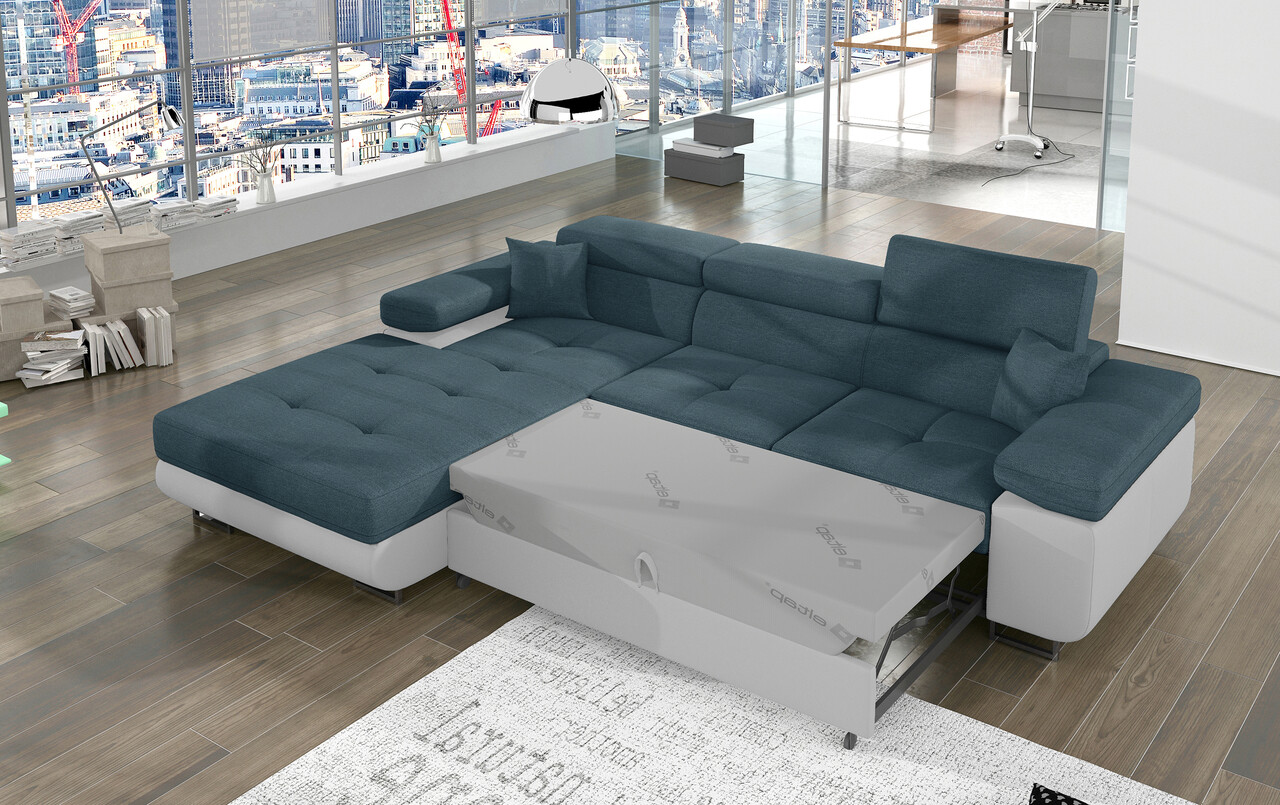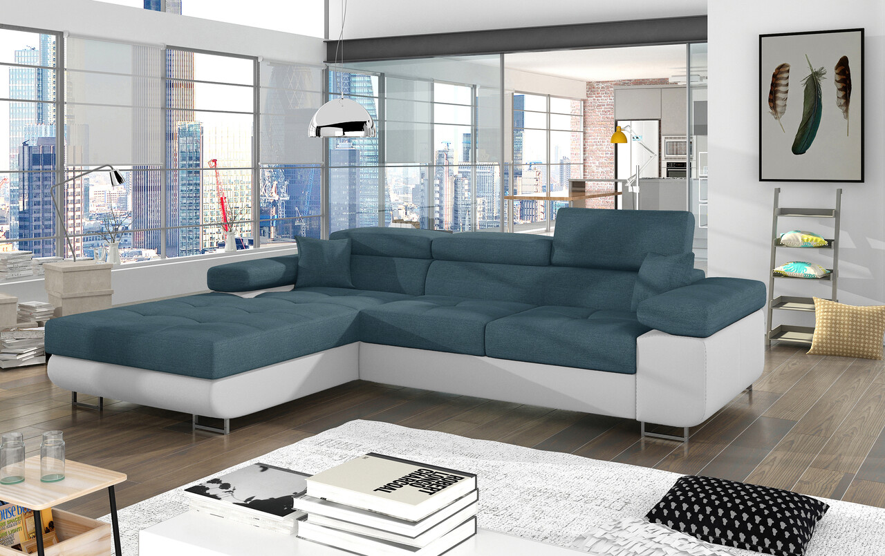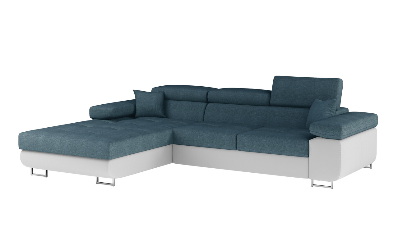 Coltar extensibil stanga 4 locuri ELTAP, Armd-68, Armando, 289x203x85 cm, lemn/poliester, albastru/alb